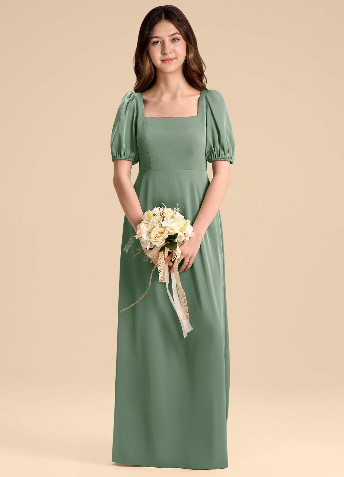 Vestido de Matcha de Satén Elástico de Corte en A con Lazo