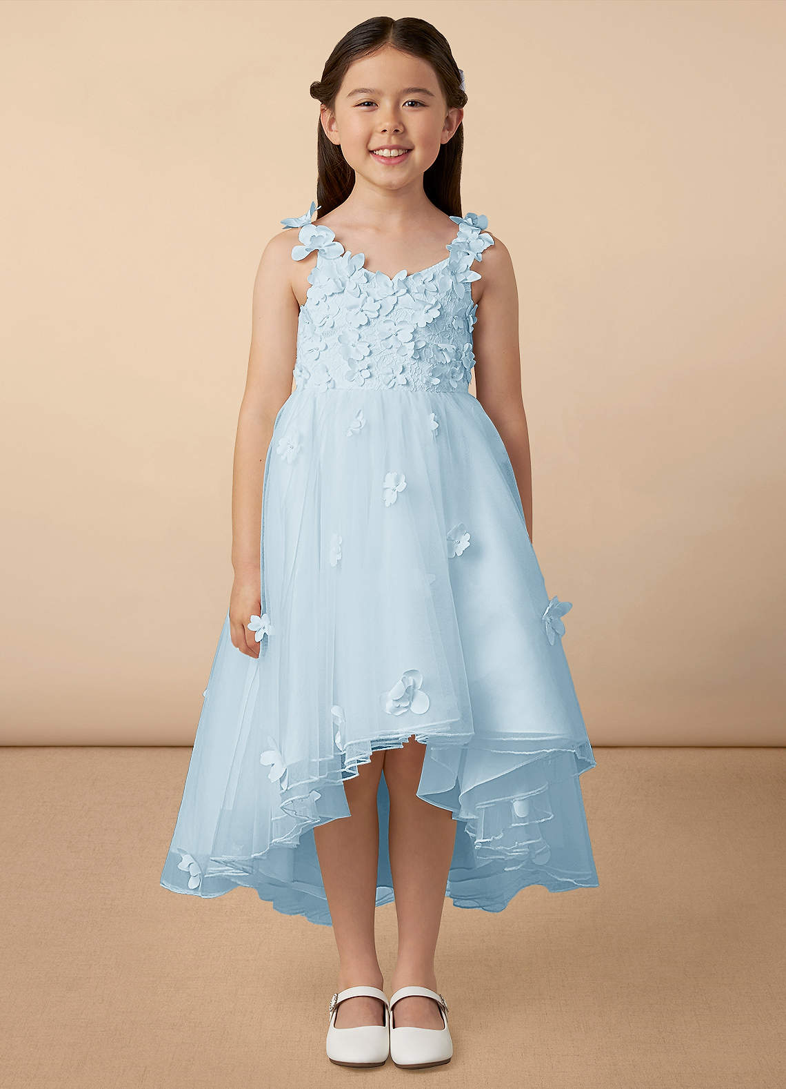 Vestido de Azul Cielo de Tul de Princesa con Encaje
