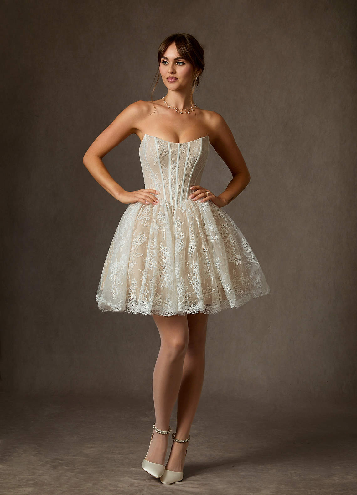 Vestido de Blanco Diamante Nude de Encaje de Corte Princesa con Sin tirantes