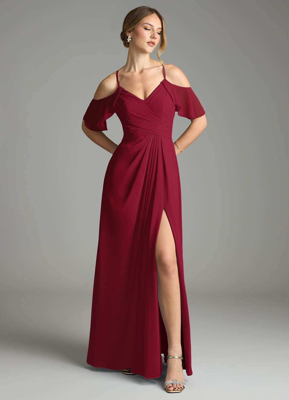 Vestido de Borgoña de Gasa de Corte en A con Cuello en V plisado