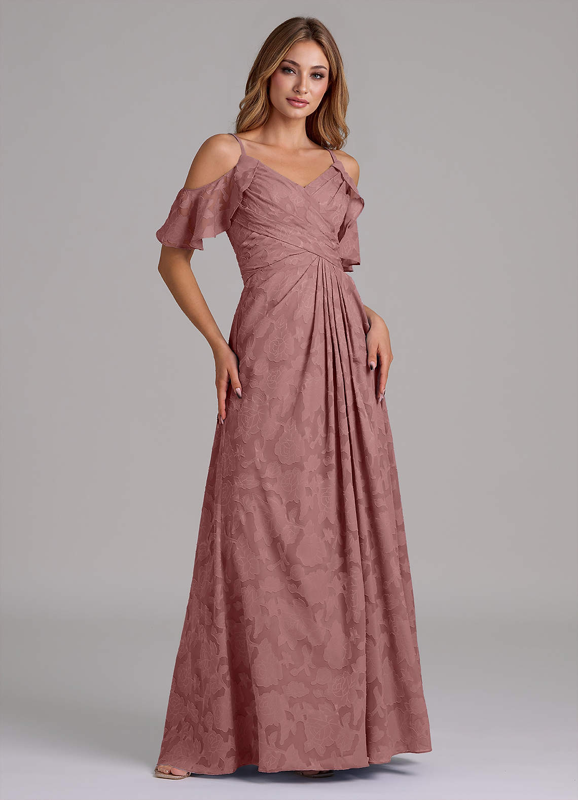 Vestido de Rosa Polvorienta de Devorado Floral de Corte en A con Vestidos sin tirantes