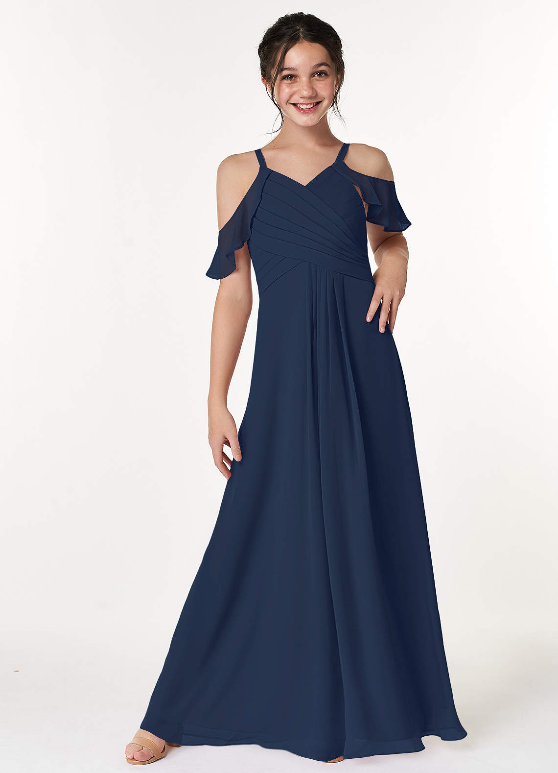 Vestido de Azul Marino Oscuro de Gasa de Corte en A con Vestidos sin tirantes