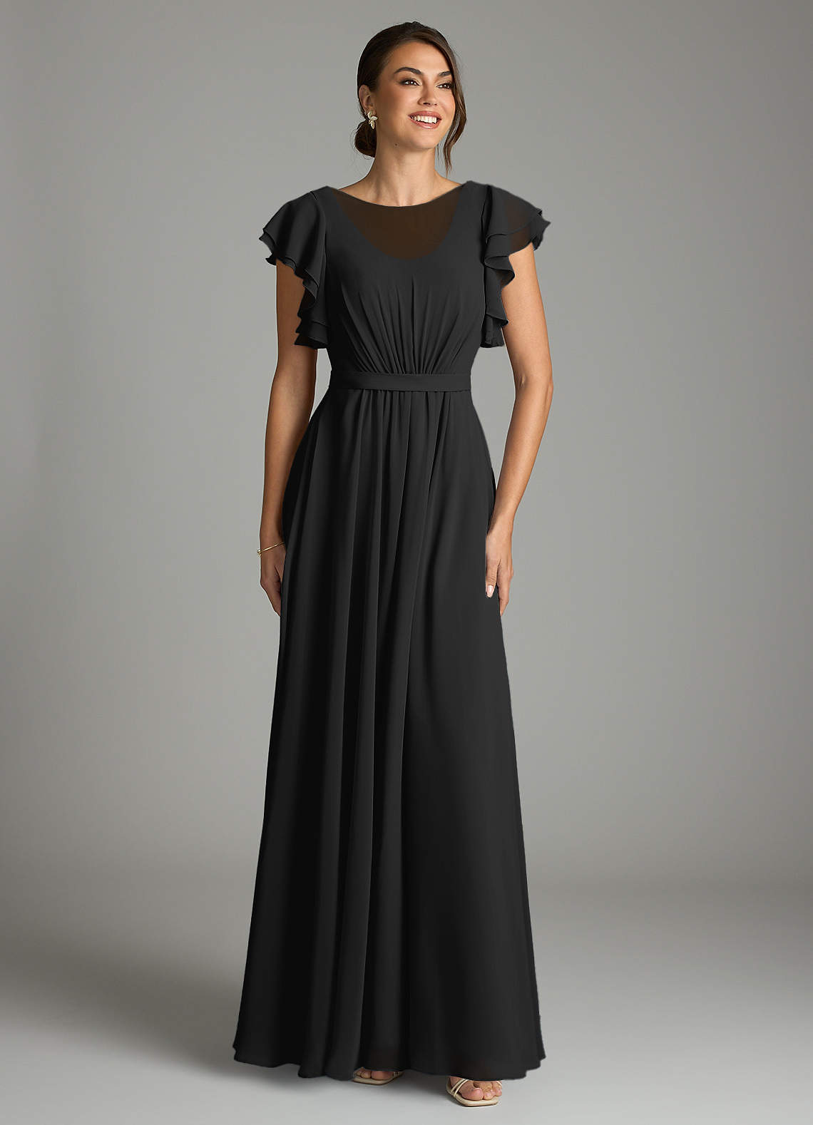Vestido de Corte en A Volantes Hasta el suelo Gasa negro
