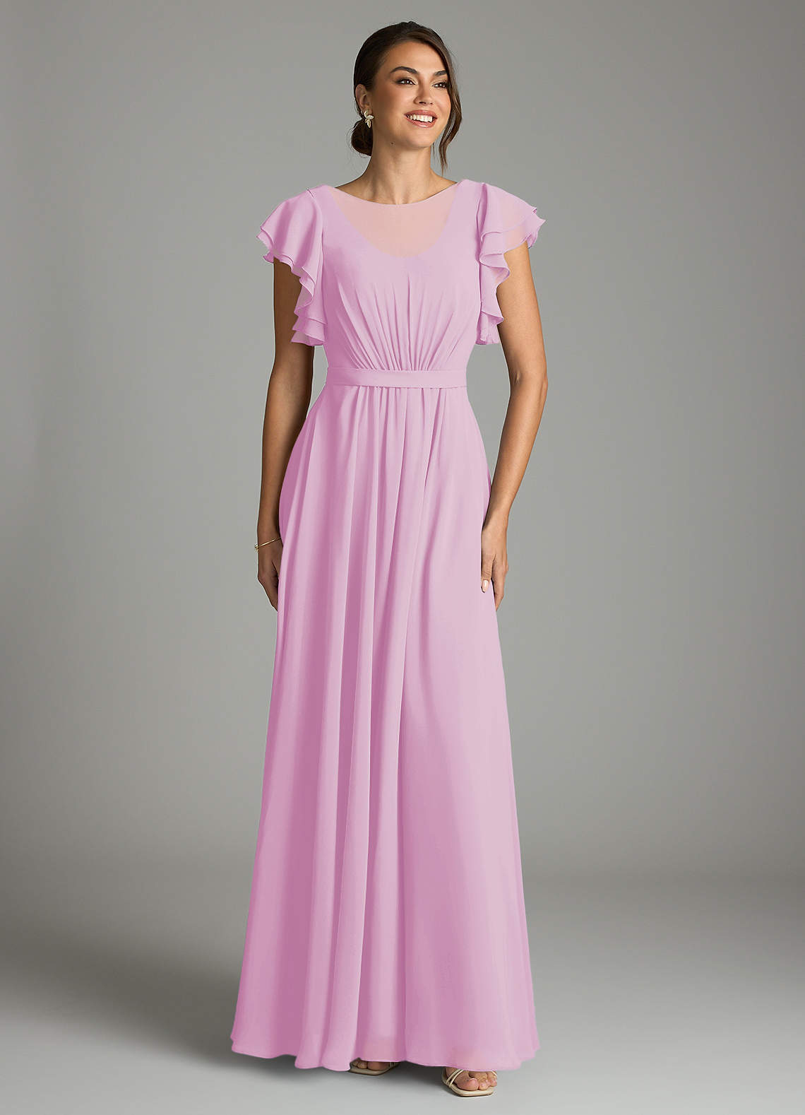Vestido de Corte en A Volantes Hasta el suelo Gasa rosa caramelo