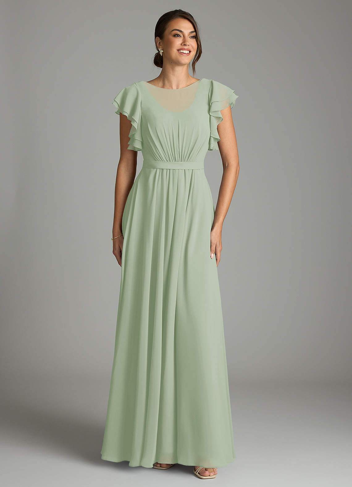 Vestido de Corte en A Volantes Hasta el suelo Gasa Salvia polvorienta