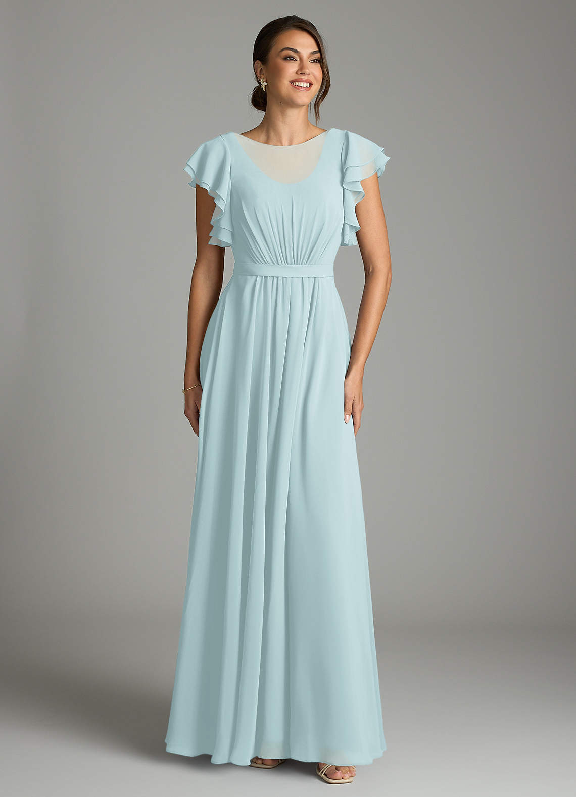 Vestido de Corte en A Volantes Hasta el suelo Gasa Neblina