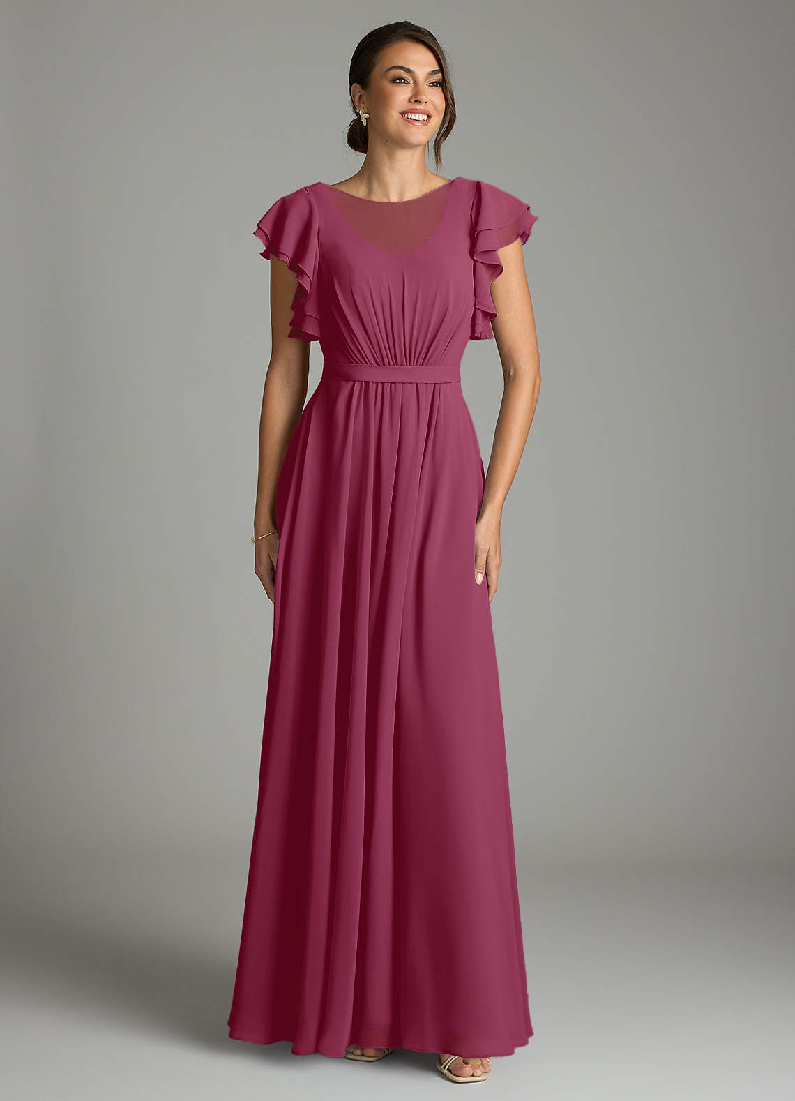 Vestido de Corte en A Volantes Hasta el suelo Gasa Mora