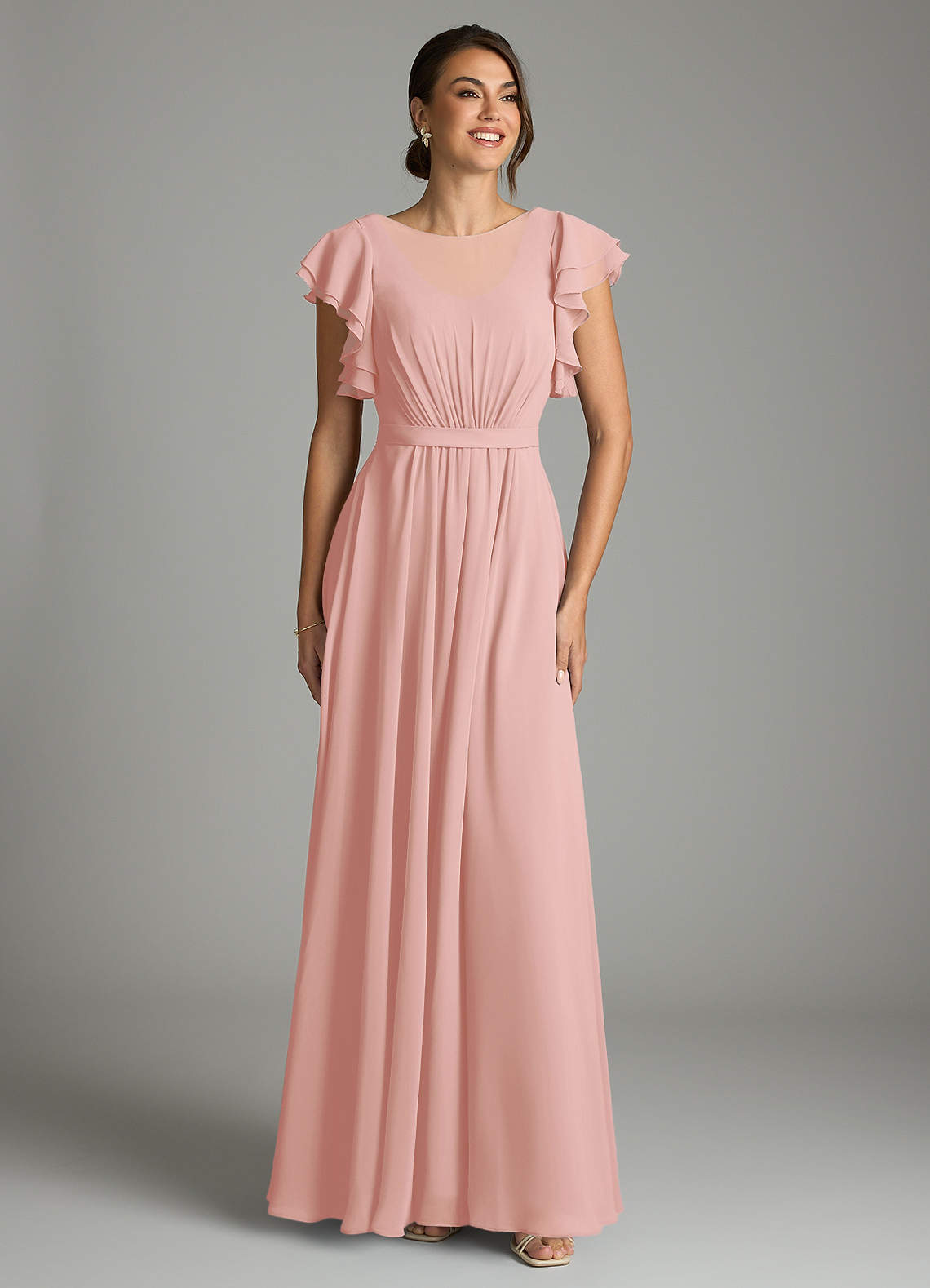 Vestido de Corte en A Volantes Hasta el suelo Gasa Rosetón