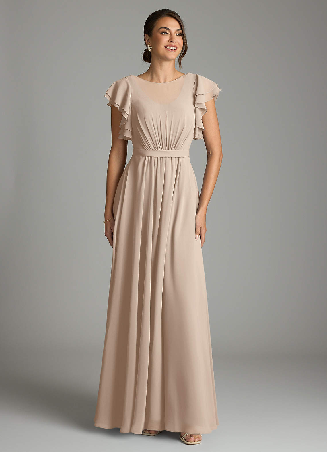Vestido de Corte en A Volantes Hasta el suelo Gasa Gris pardo