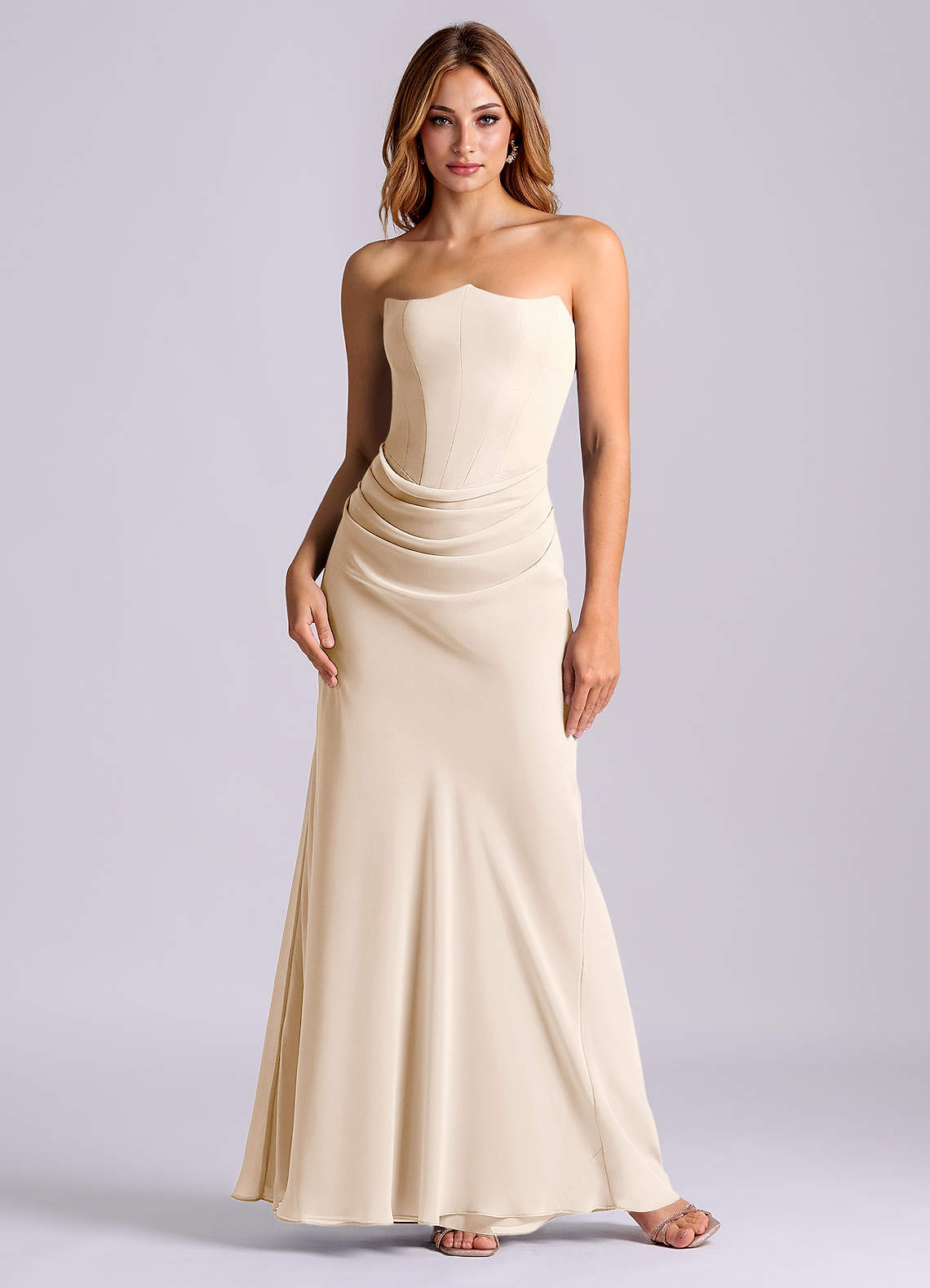 Vestido de Alabastro Blanco de Gasa de Corte Sirena con Sin tirantes
