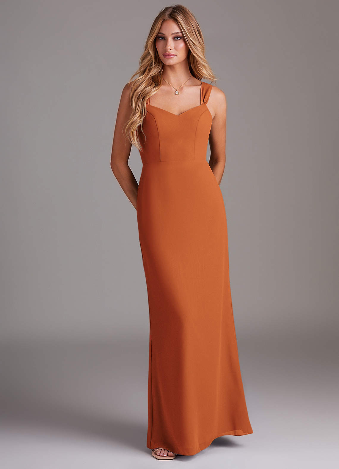Vestido de Canela de Gasa de Corte Recto con Plisado