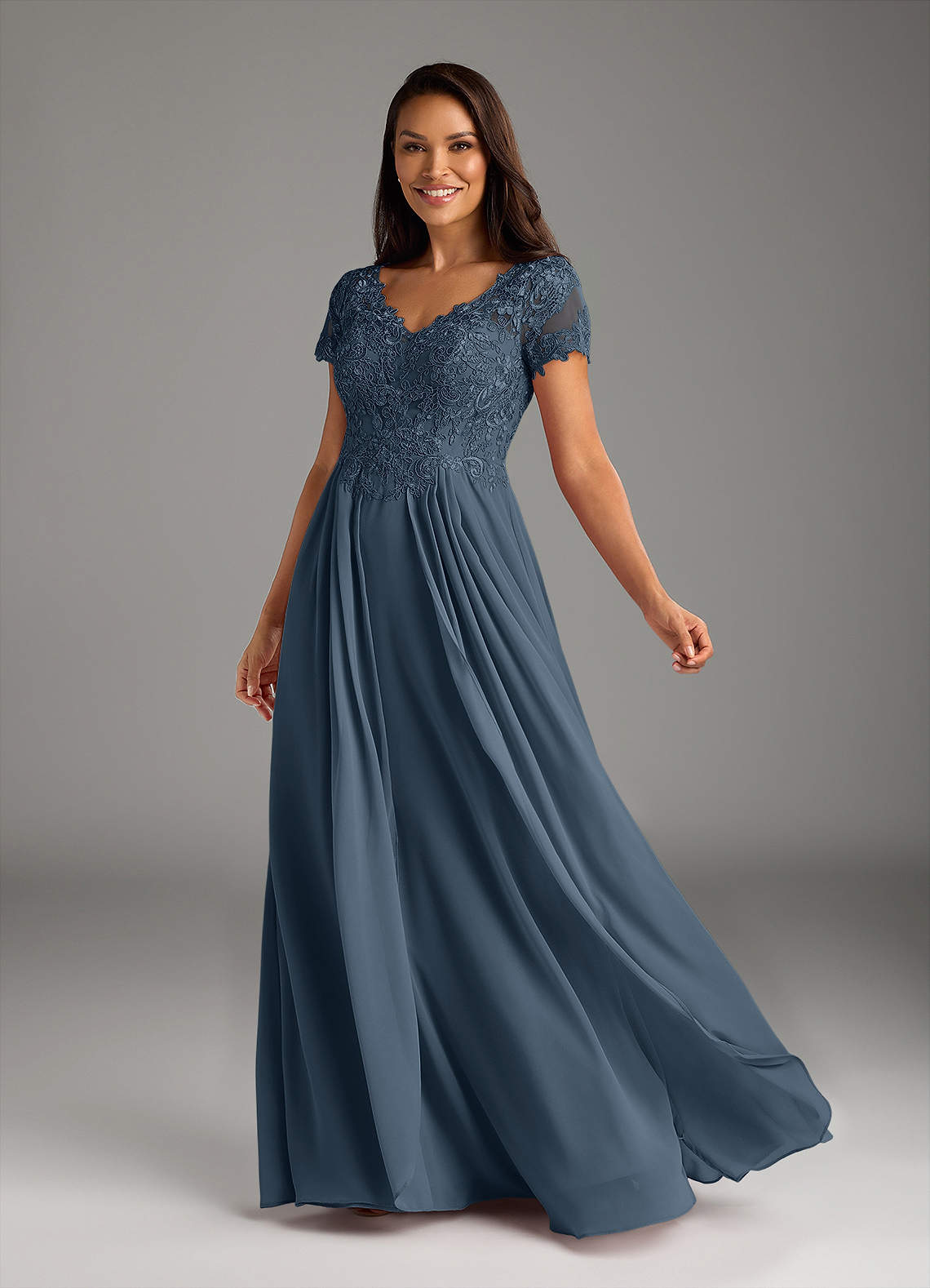 Vestido de Neptuno de Gasa de Corte en A con Encaje cuello pico