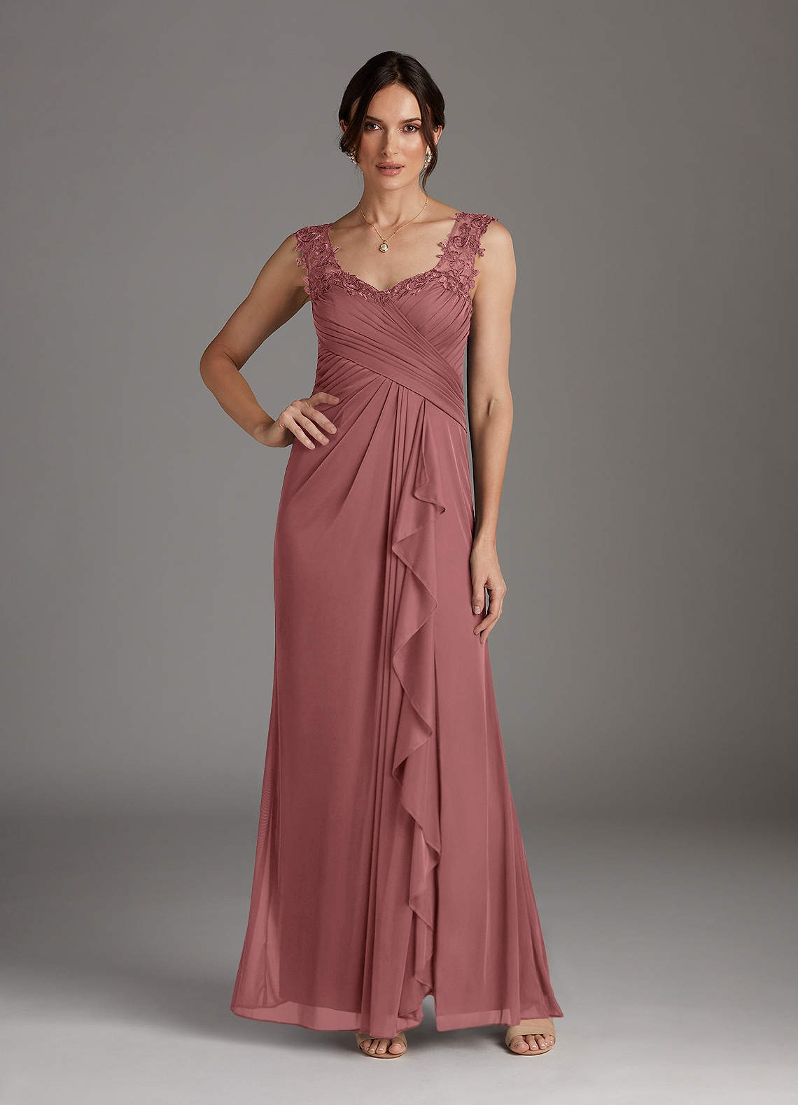 Vestido de Rosa Del Desierto de Malla de Corte en A con Cuello Corazón Plisado