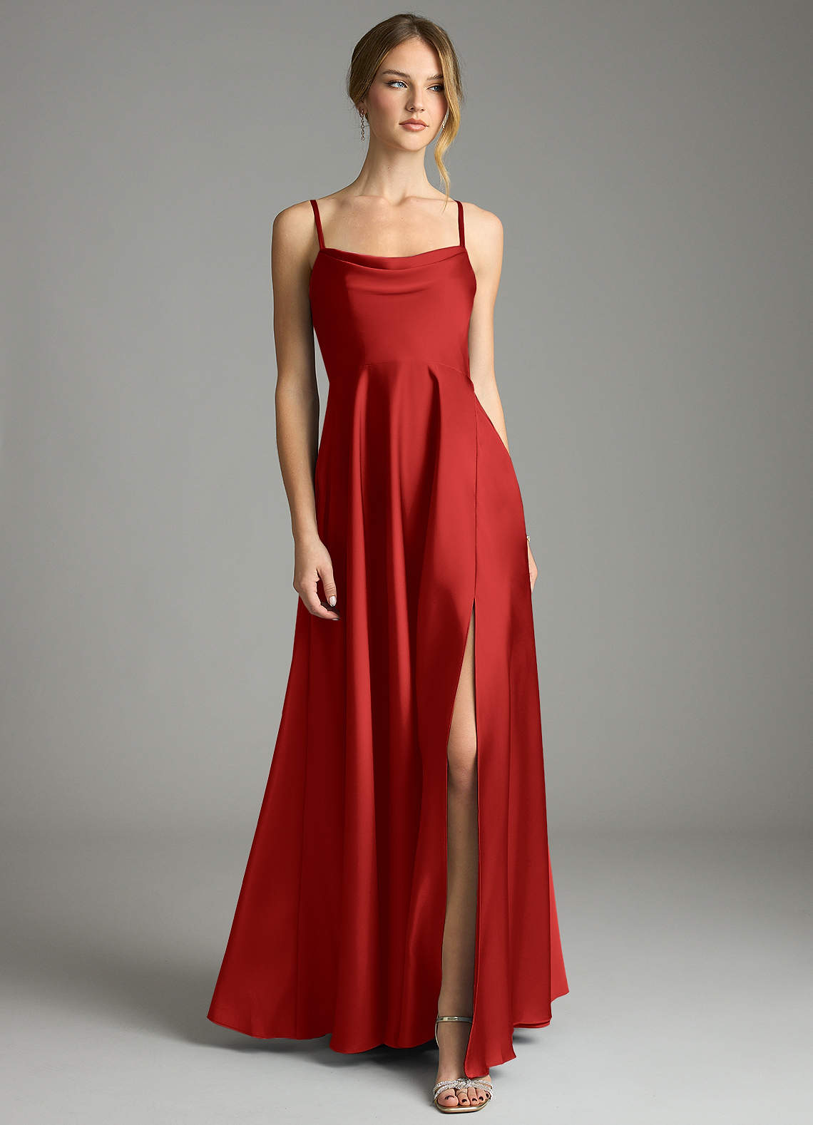 Vestido de Granada de Satén Elástico de Corte en A con Plisado