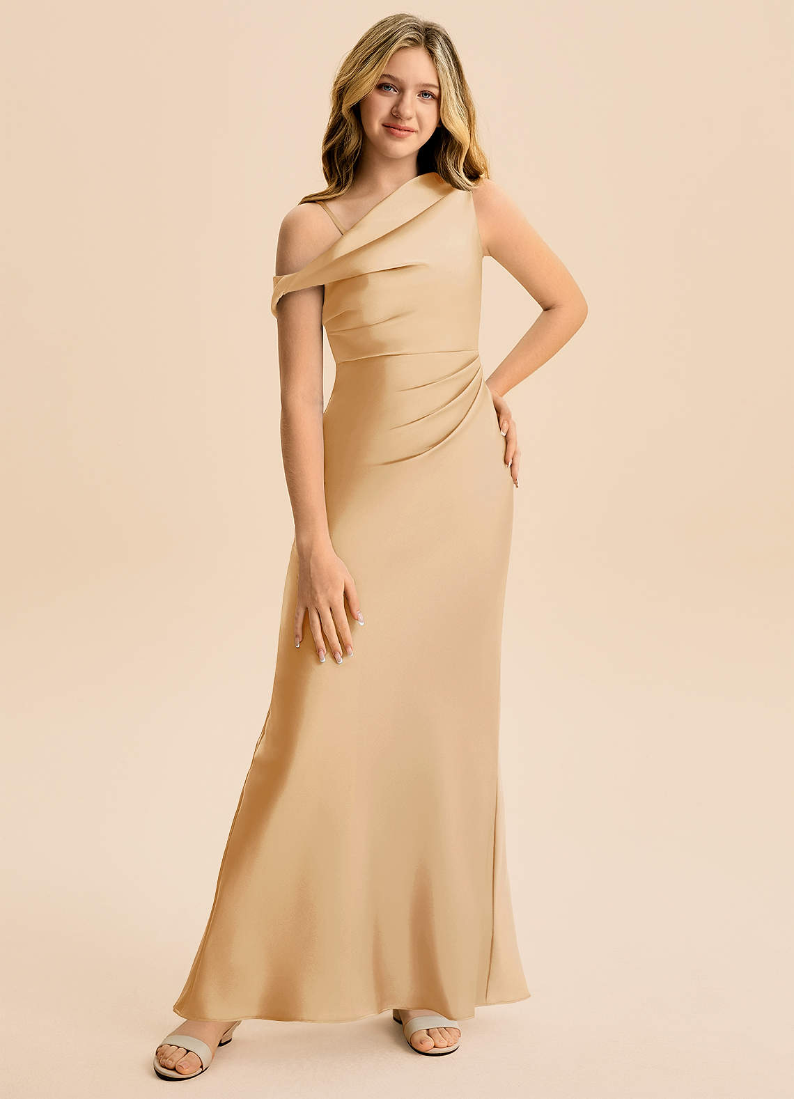 Vestido de Oro de Satén Elástico de Corte Recto con Vestidos sin tirantes
