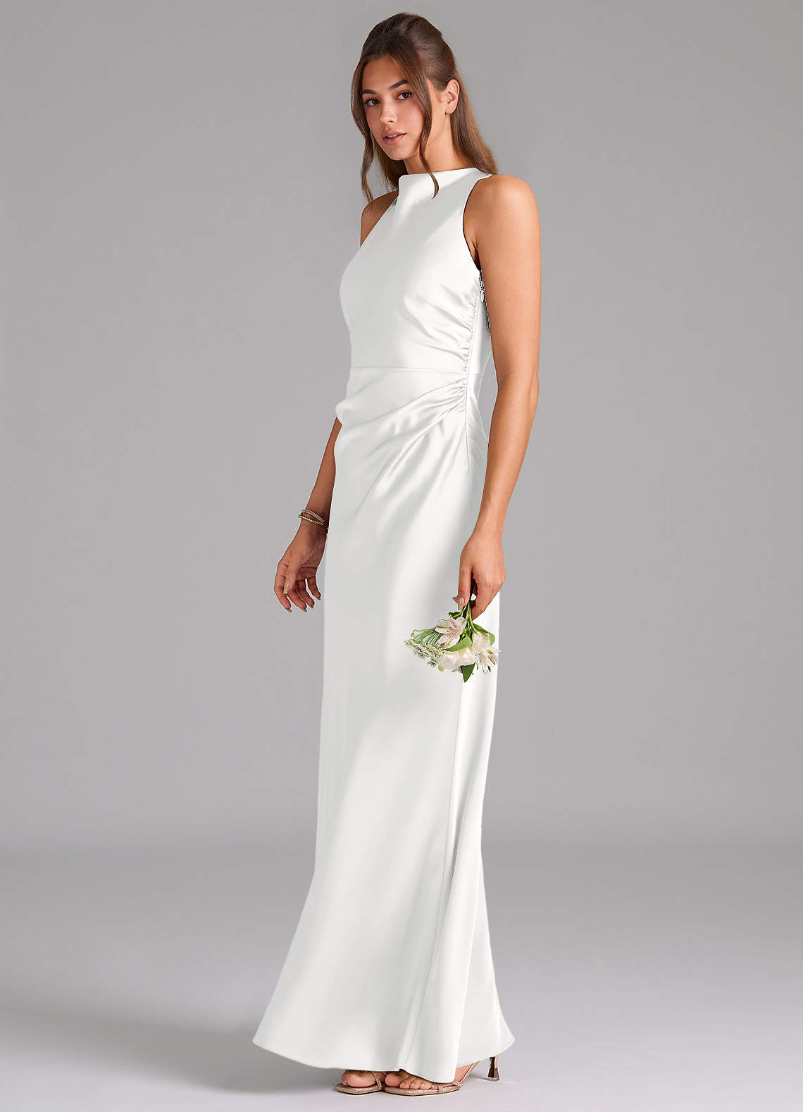 Vestido de Blanco de Satén Elástico de Corte Recto con Plisado