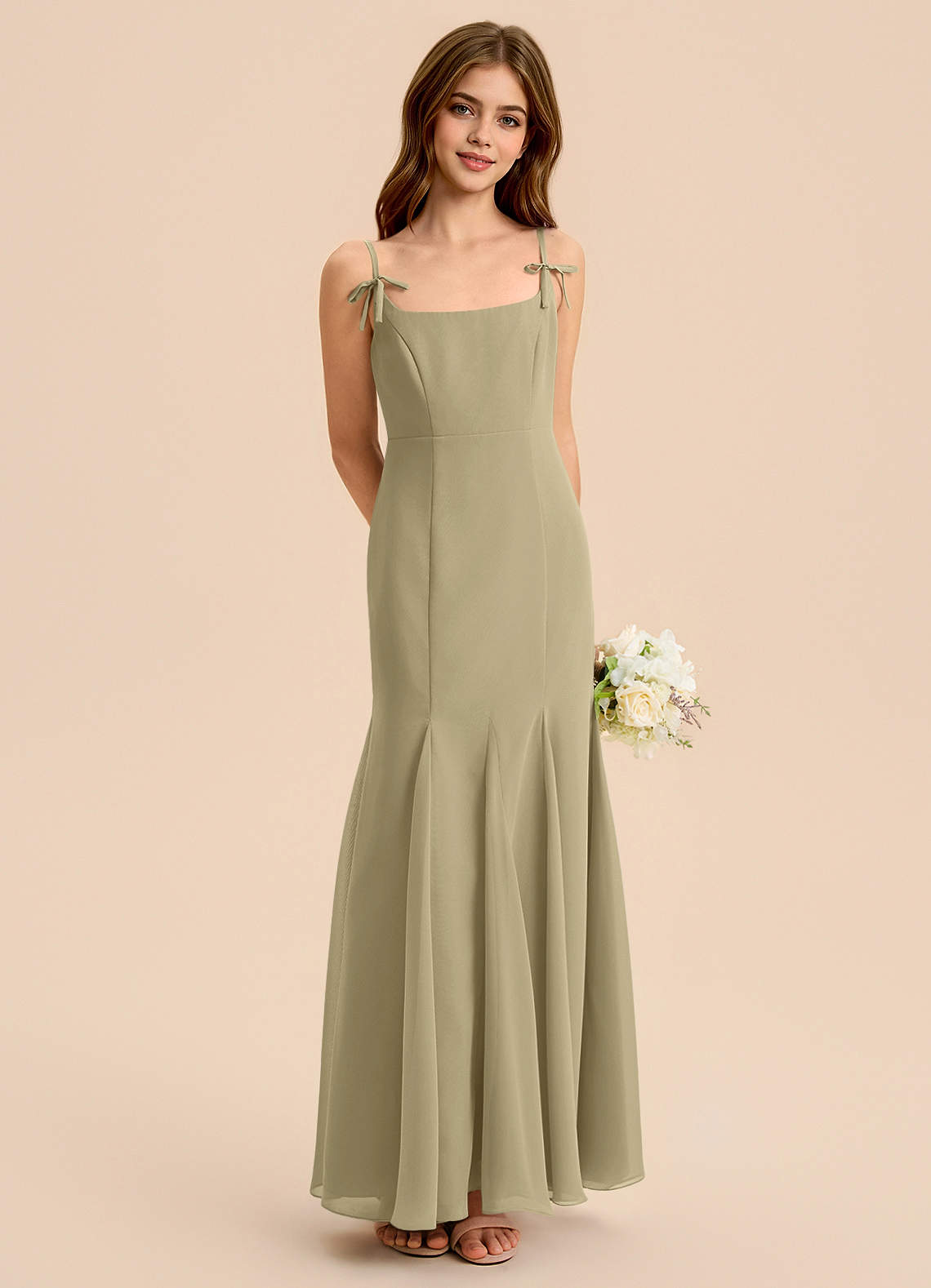 Vestido de Musgo Verde de Gasa de Corte Sirena con Plisado