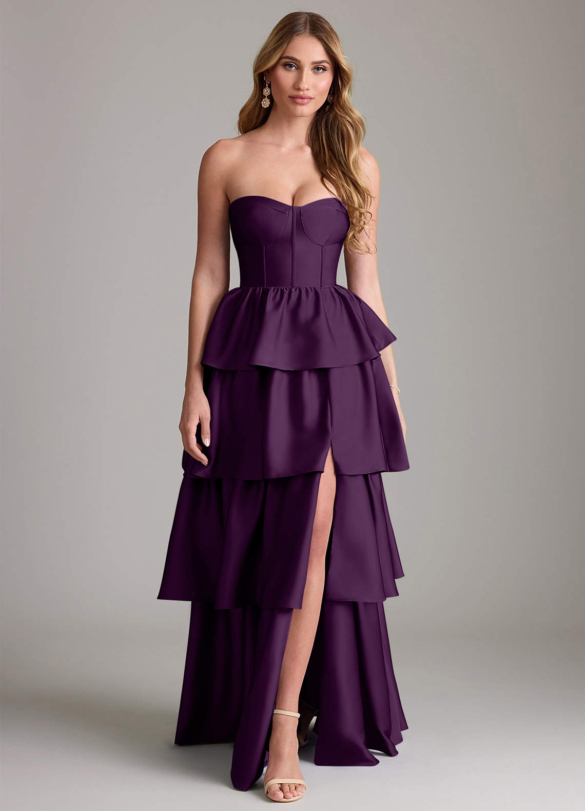 Vestido de Uva de Satén Elástico de Corte en A con Volante