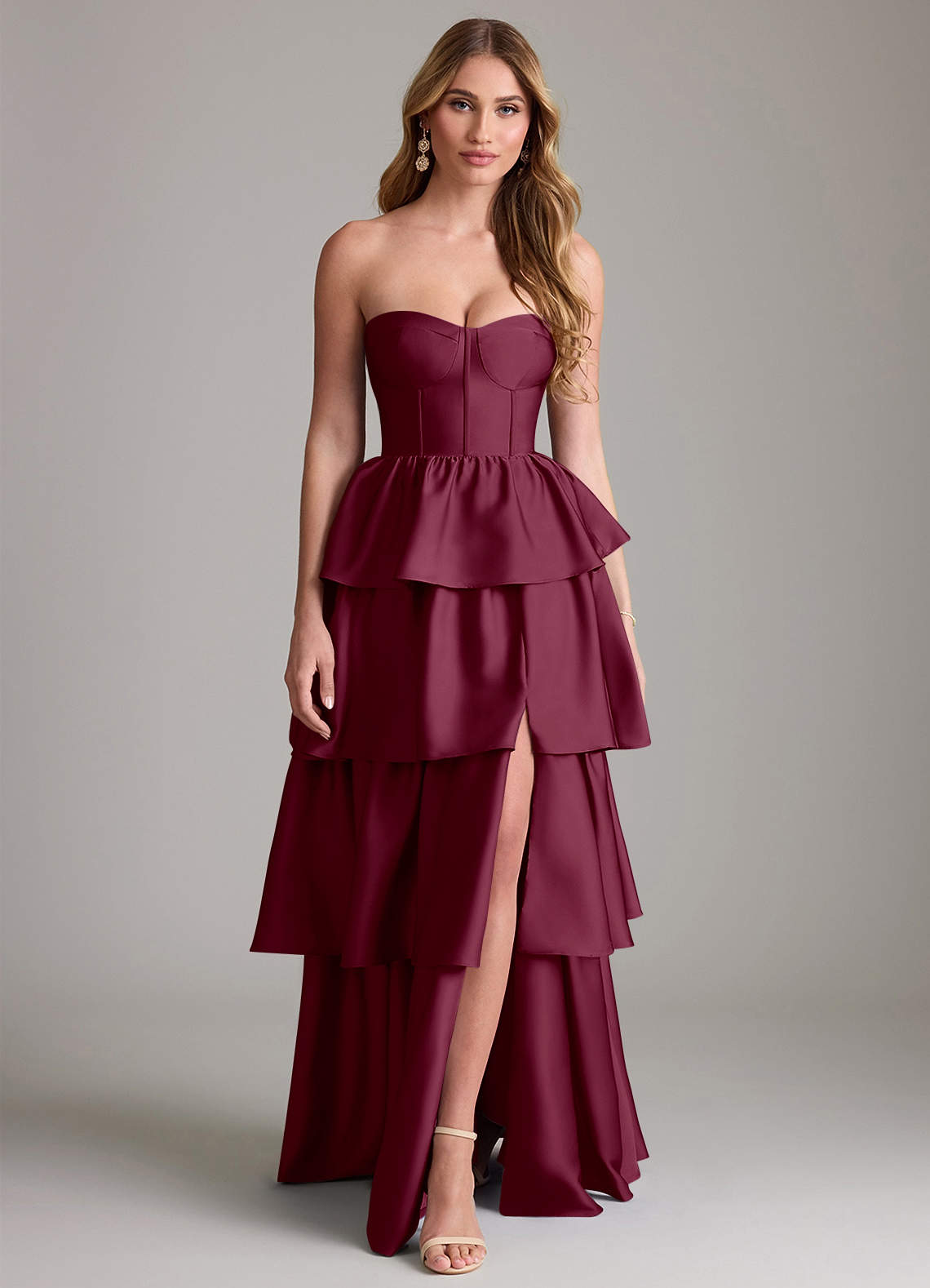 Vestido de Mora de Satén Elástico de Corte en A con Volante