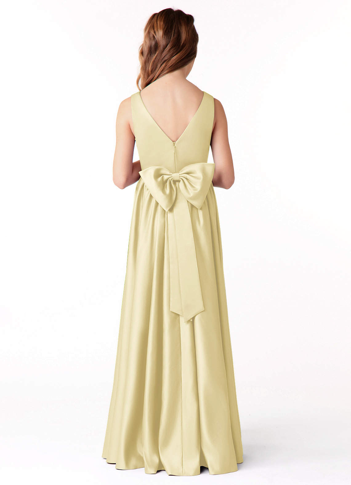 Vestido de Sorbete De Limón de Satén Elástico de Corte en A con Lazo
