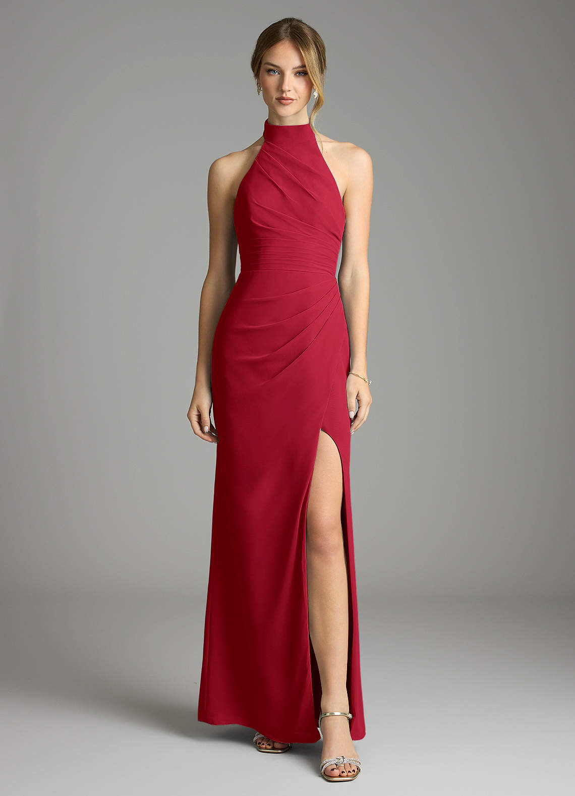 Vestido de Escarlata de Gasa de Corte Recto con Plisado