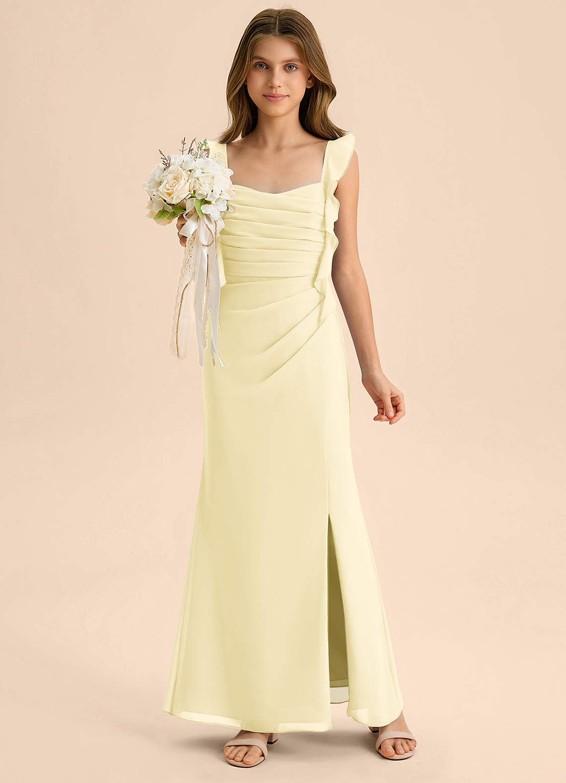Vestido de Sorbete De Limón de Gasa de Corte Sirena con Escote de Corazón