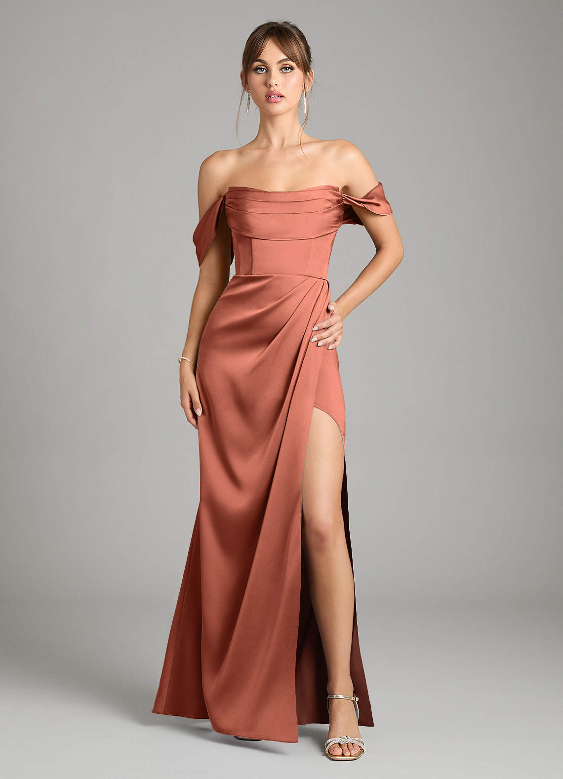 Vestido de Arcilla de Satén Elástico de Corte Sirena Convertible con Vestidos sin tirantes