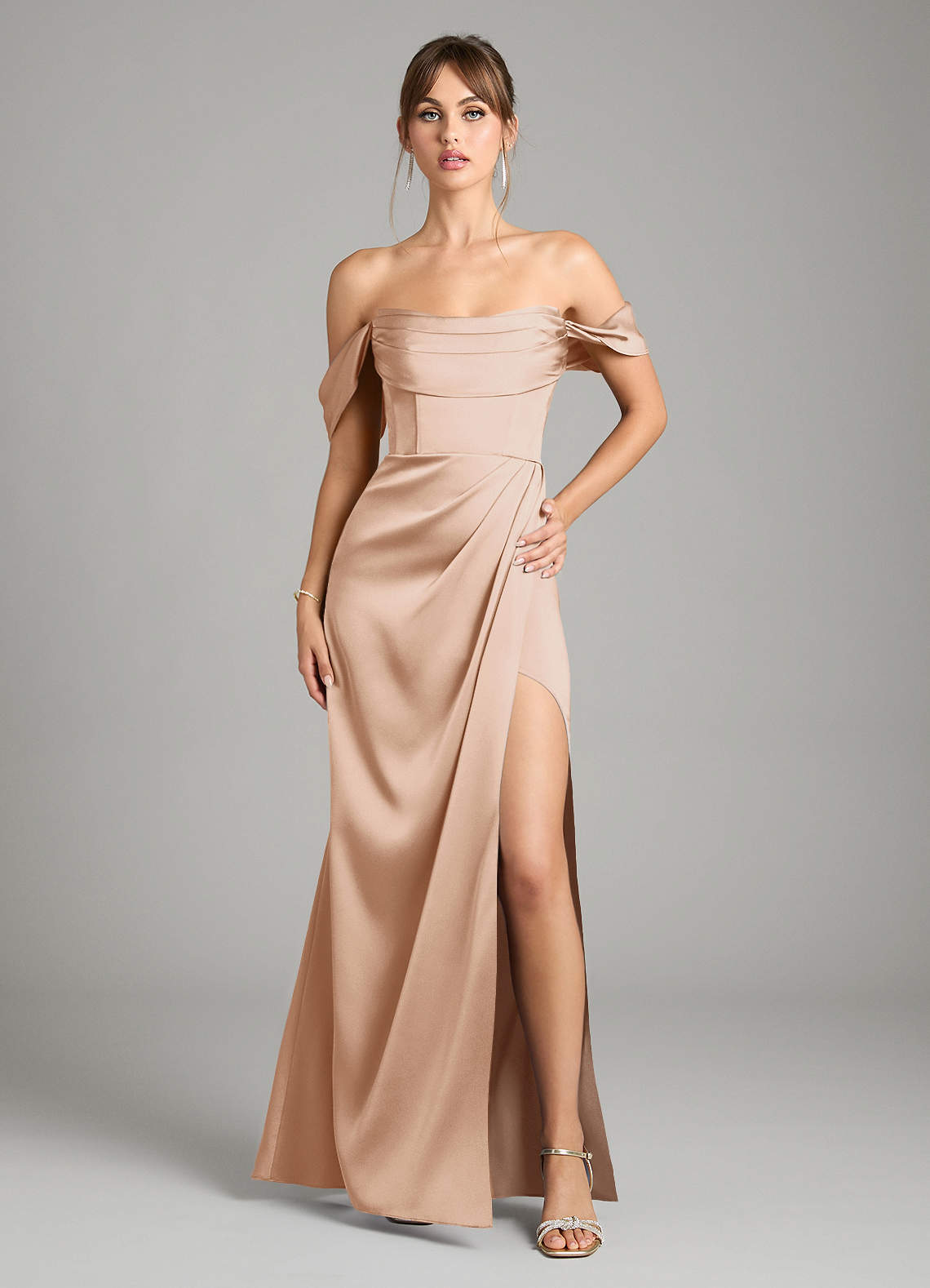 Vestido de Rosa Inglesa de Satén Elástico de Corte Sirena Convertible con Vestidos sin tirantes