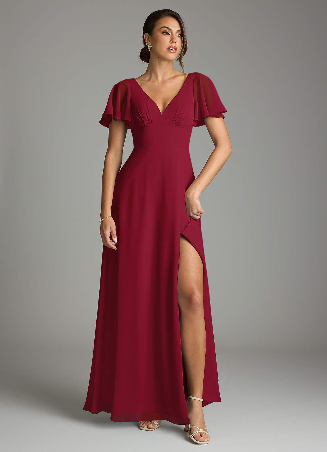 Vestido de Borgoña de Gasa de Corte en A con Manga volante