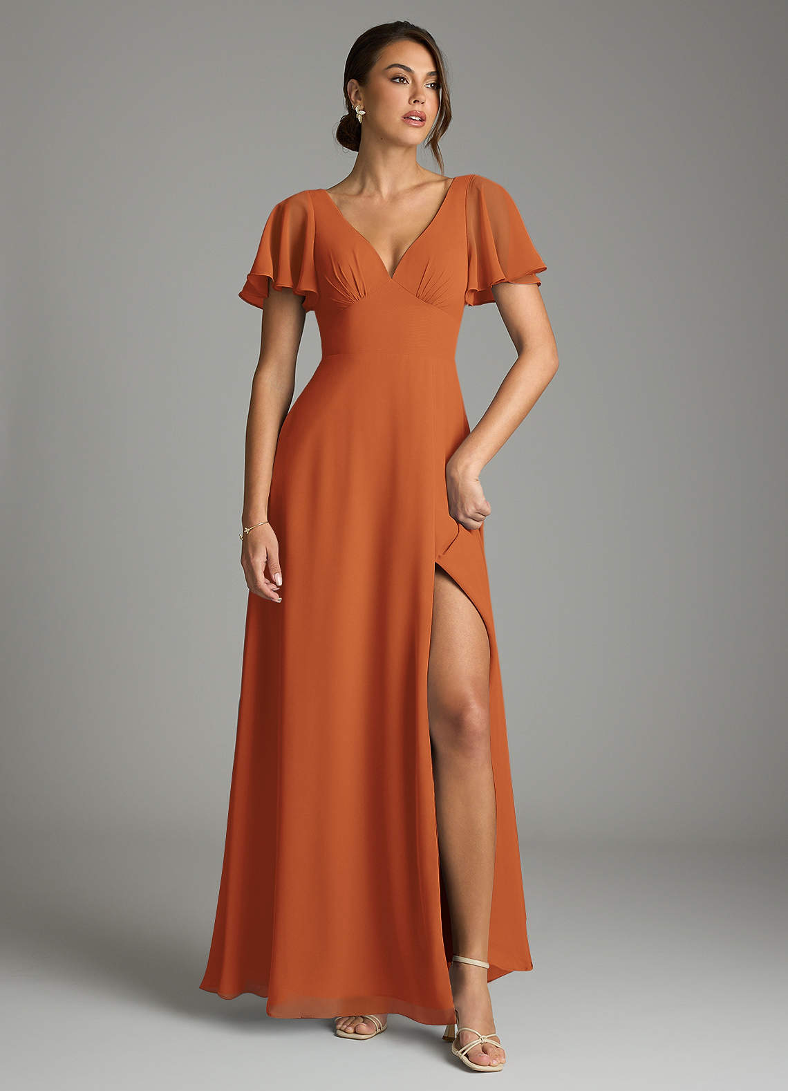Vestido de Canela de Gasa de Corte en A con Manga volante