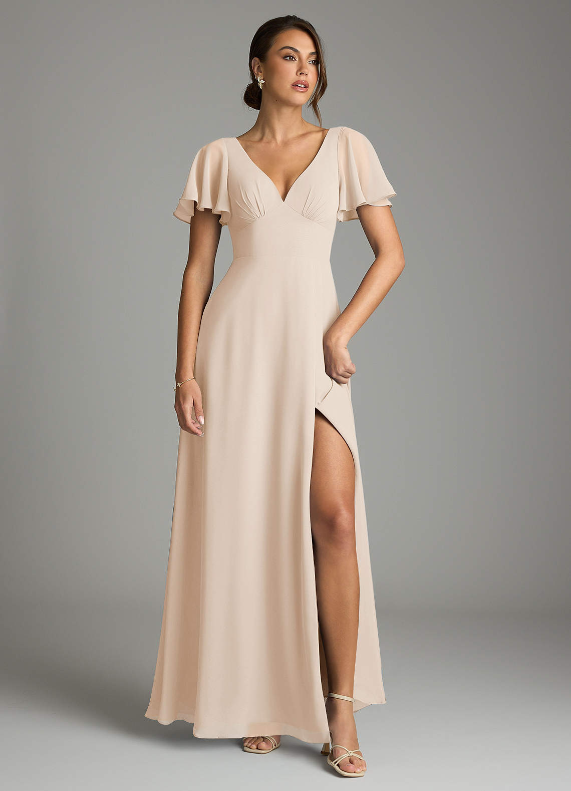 Vestido de Alabastro Blanco de Gasa de Corte en A con Manga volante