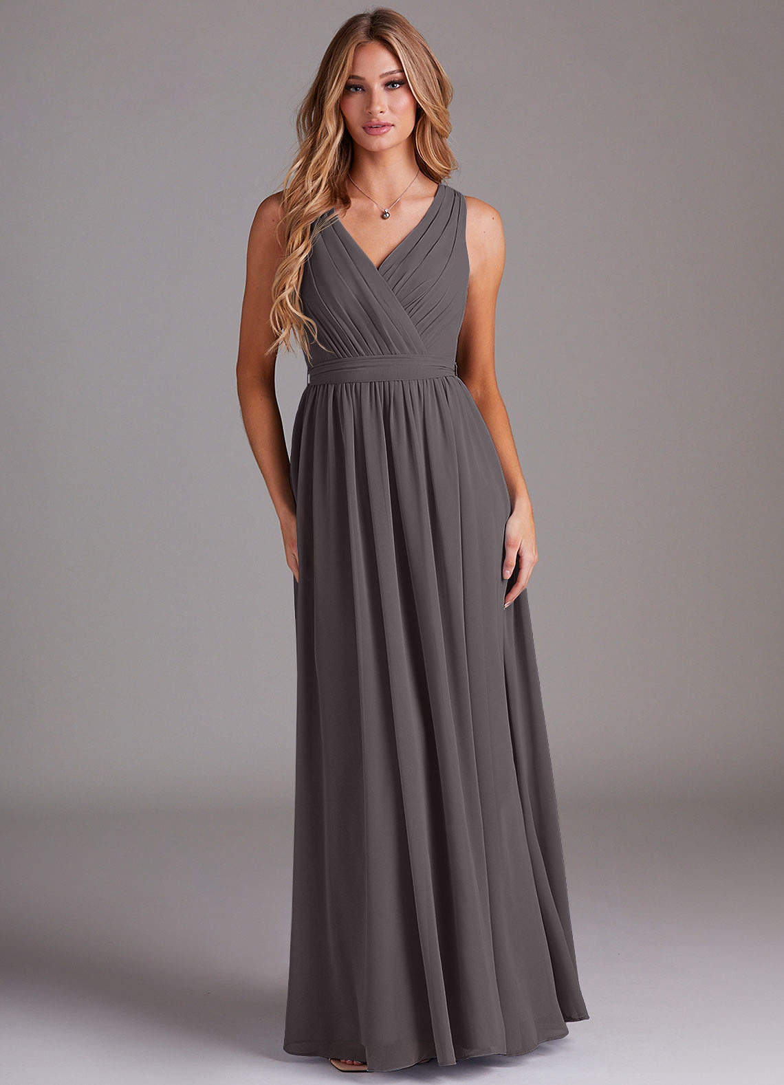Vestido de Gris Acero de Gasa de Corte en A con Encaje