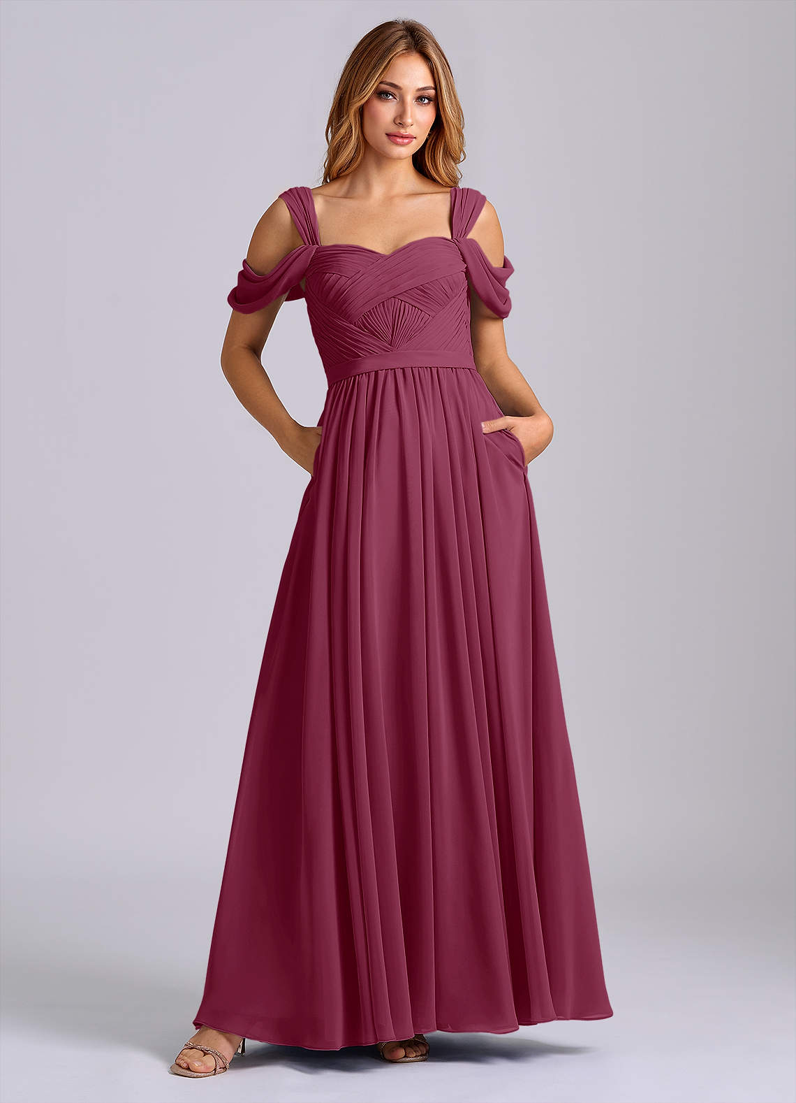 Vestido de Mora de Gasa de Corte en A con Vestidos sin tirantes
