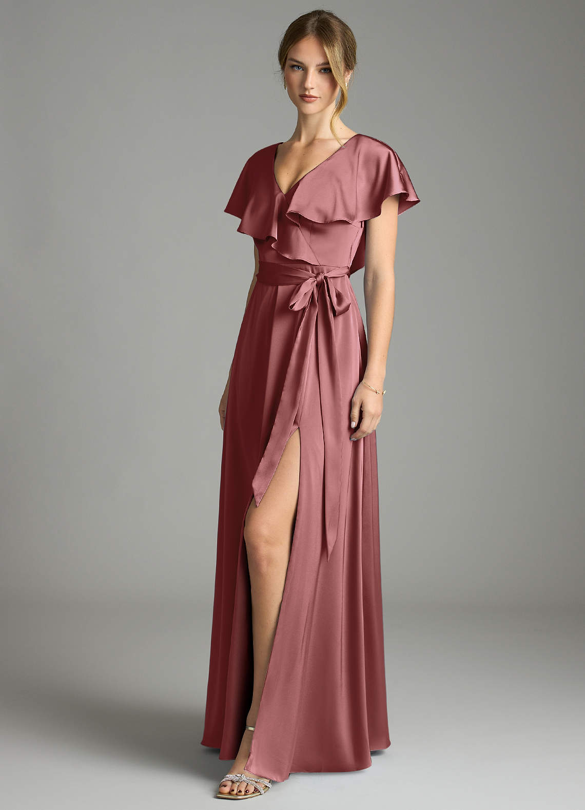 Vestido de Amatista de Satén Elástico de Corte en A con Con bolsillos