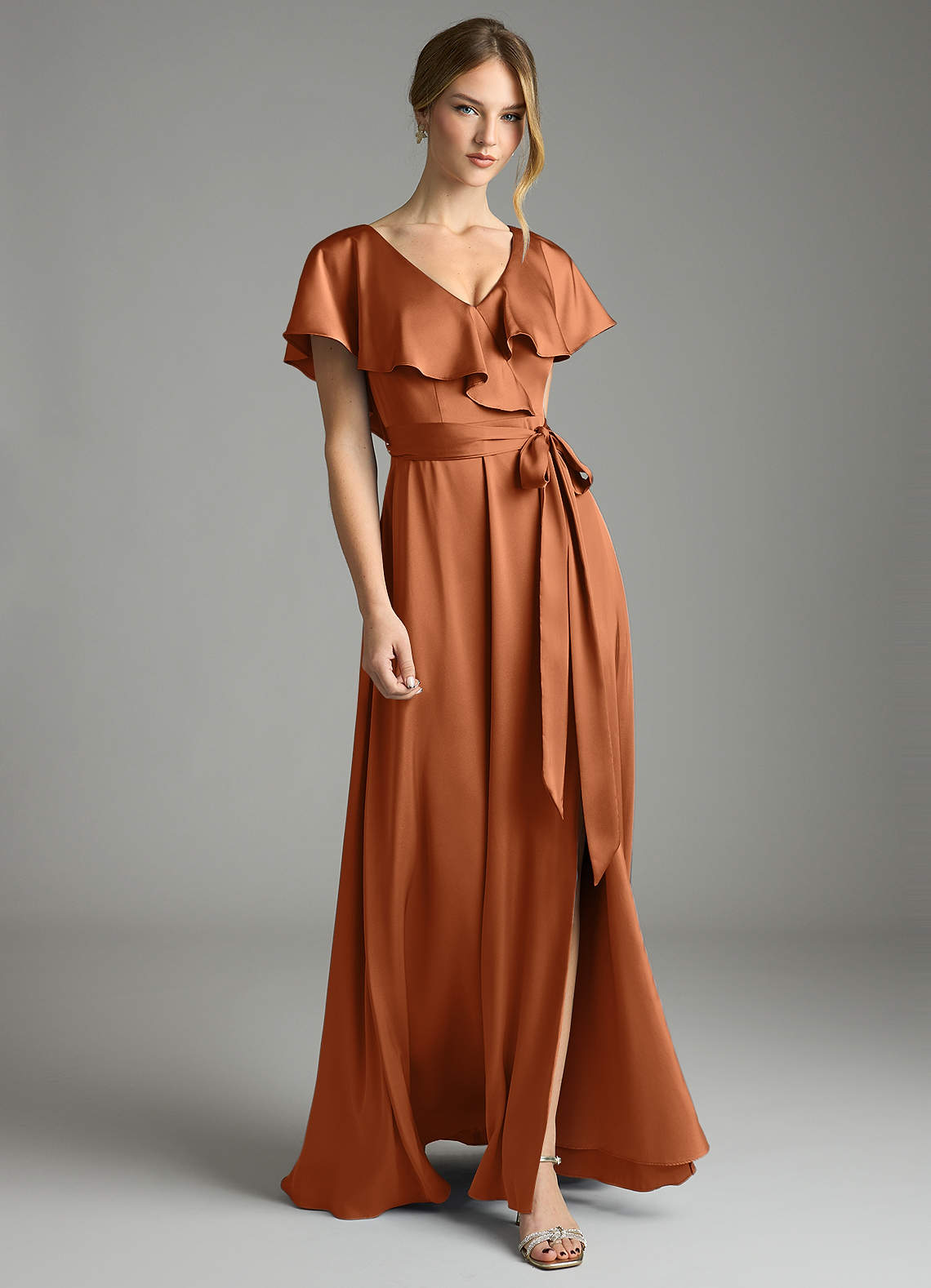 Vestido de Cobre de Satén Elástico de Corte en A con Con bolsillos