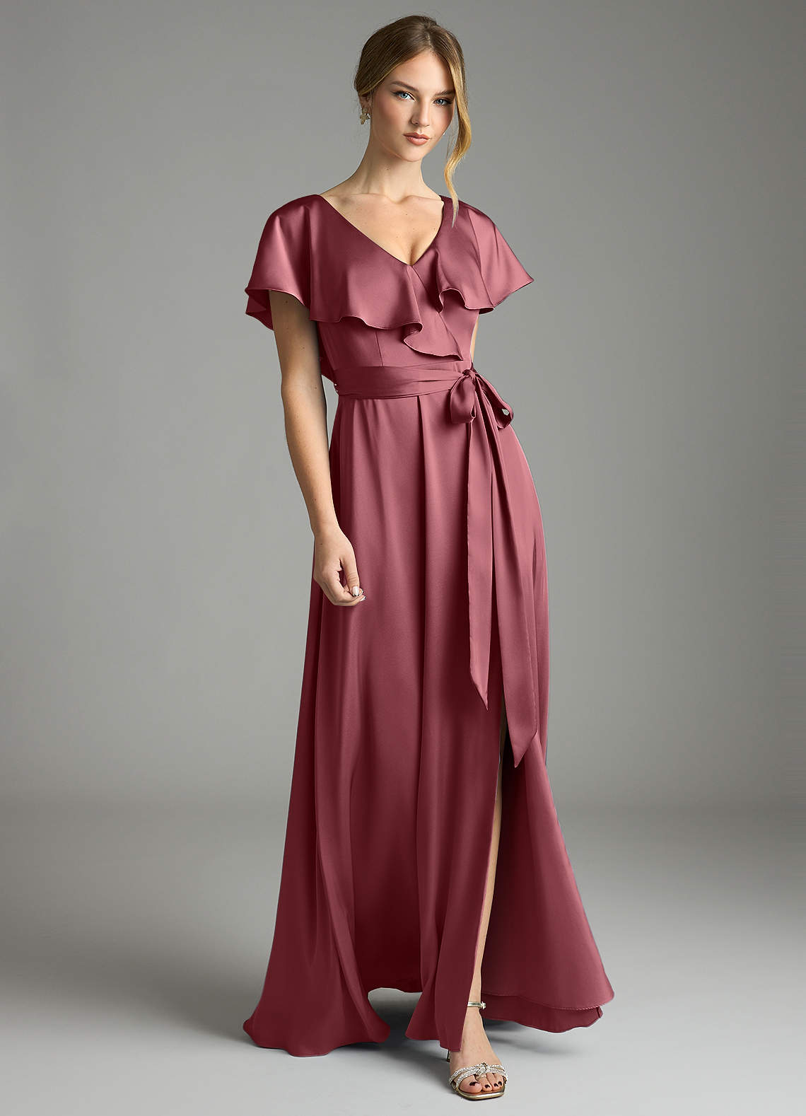 Vestido de Rosa Del Desierto de Satén Elástico de Corte en A con Con bolsillos