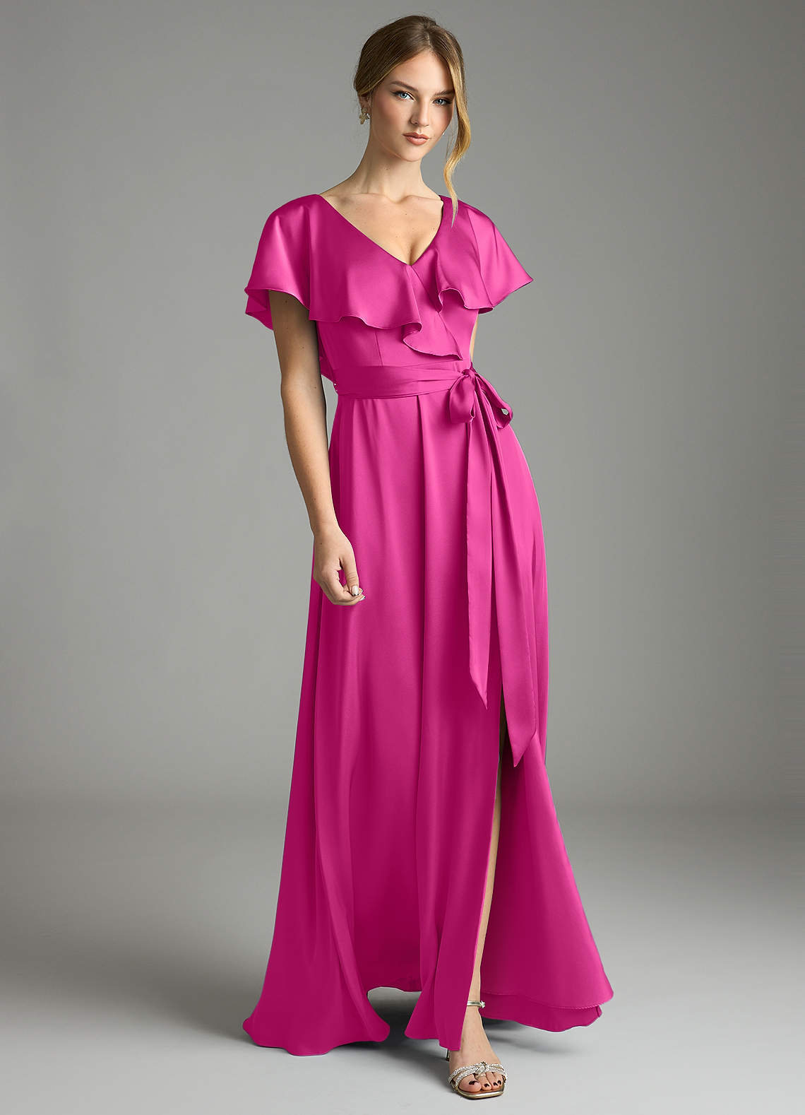 Vestido de Fucsia de Satén Elástico de Corte en A con Con bolsillos
