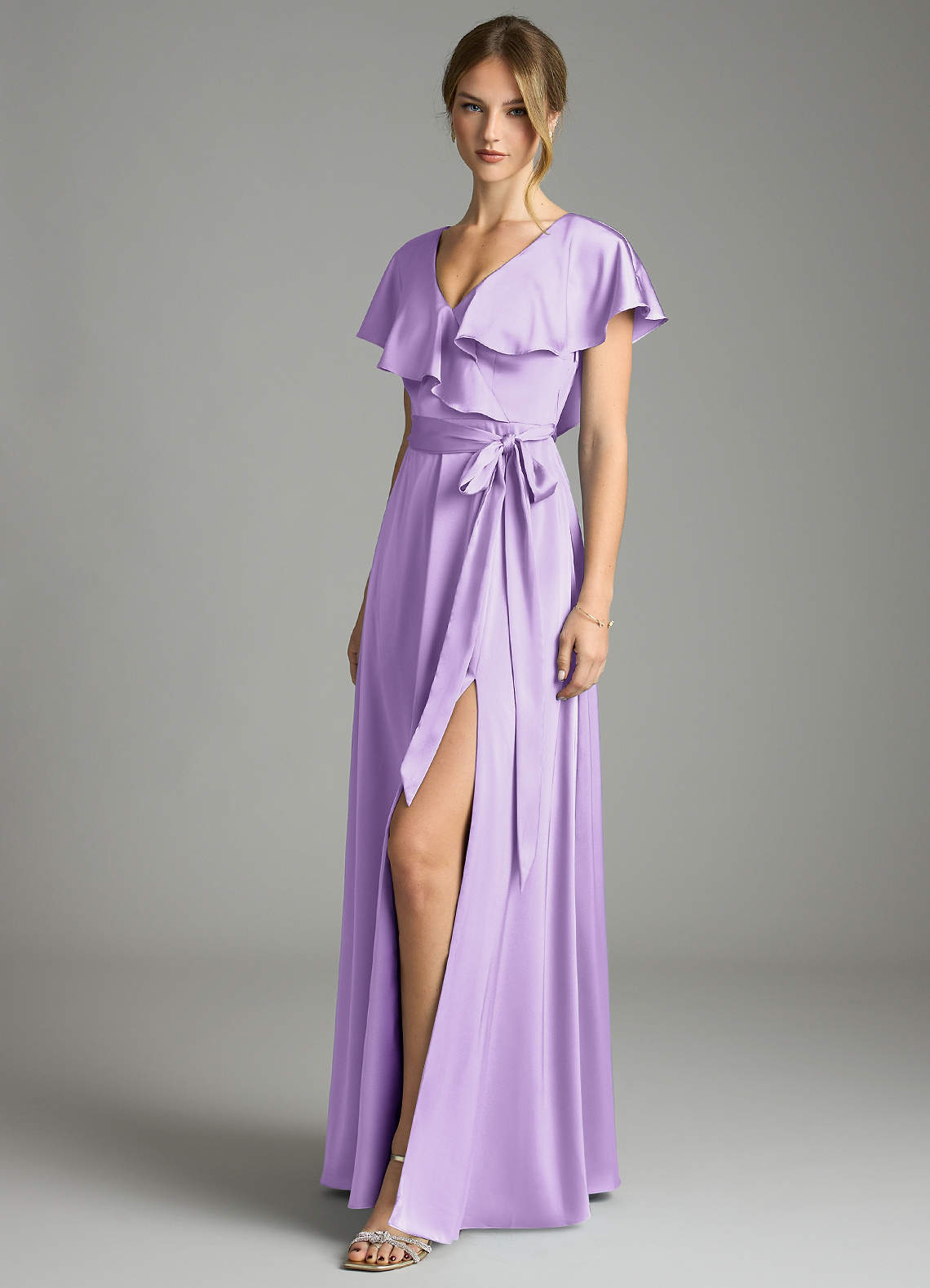 Vestido de Lila de Satén Elástico de Corte en A con Con bolsillos
