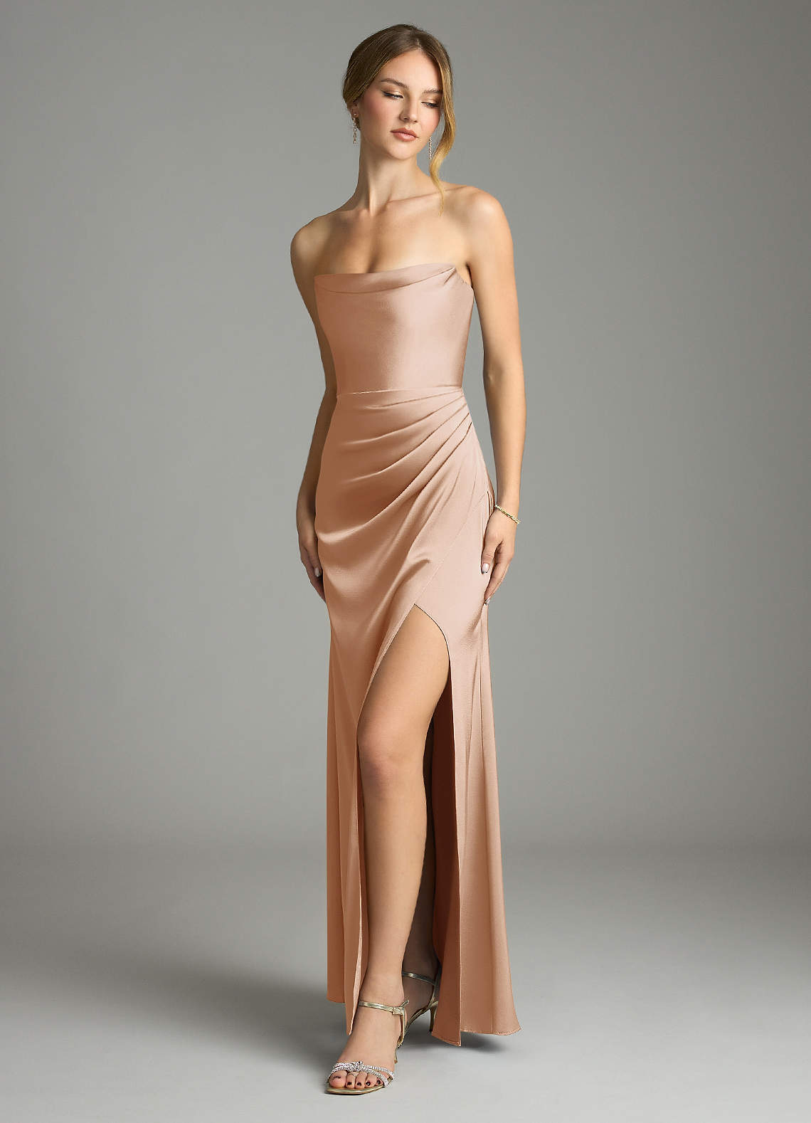 Vestido de Rosa Inglesa de Satén Elástico de Corte Sirena Convertible con Plisado
