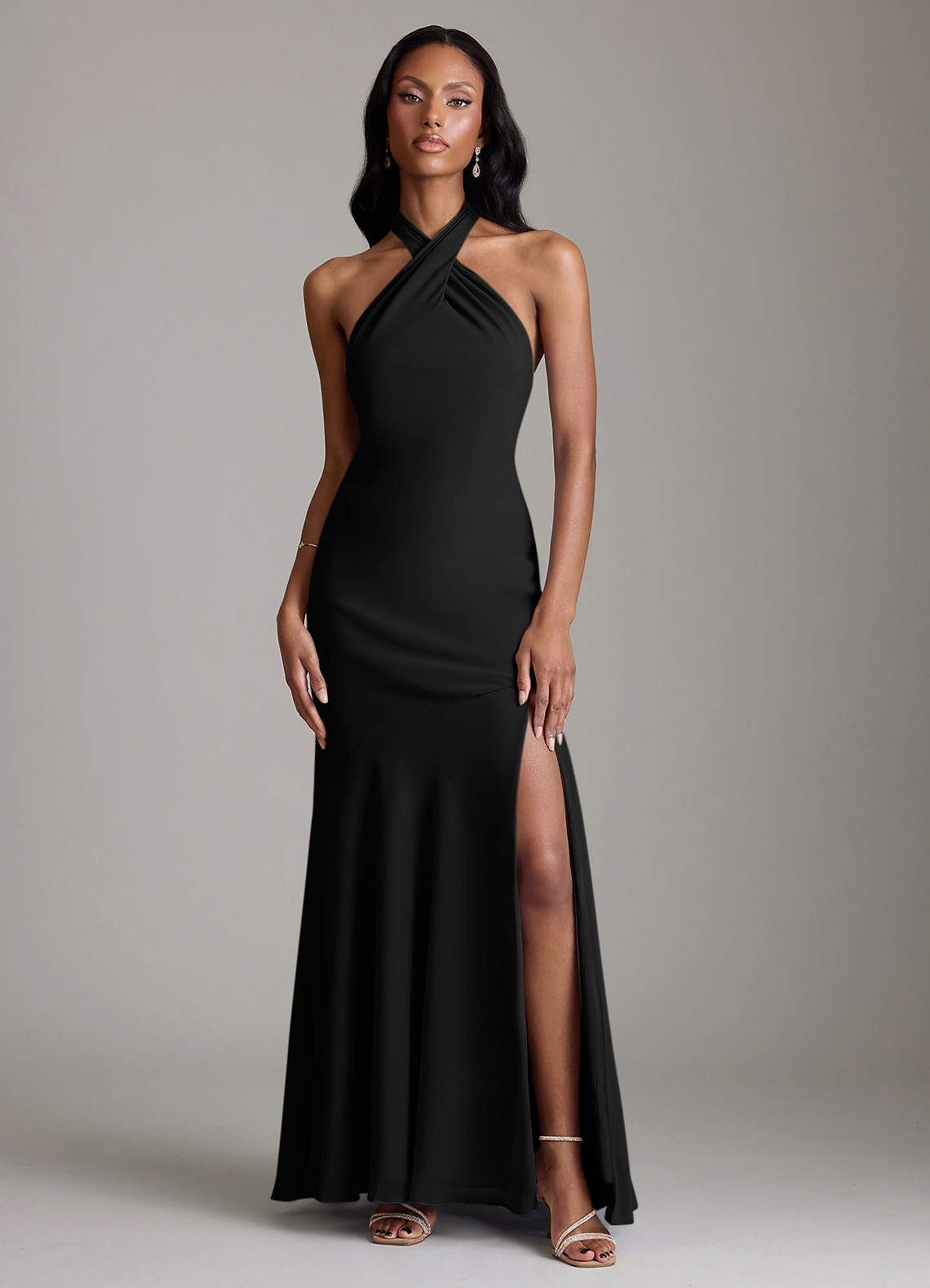 Vestido de Negro de Gasa de Corte Sirena con Plisado