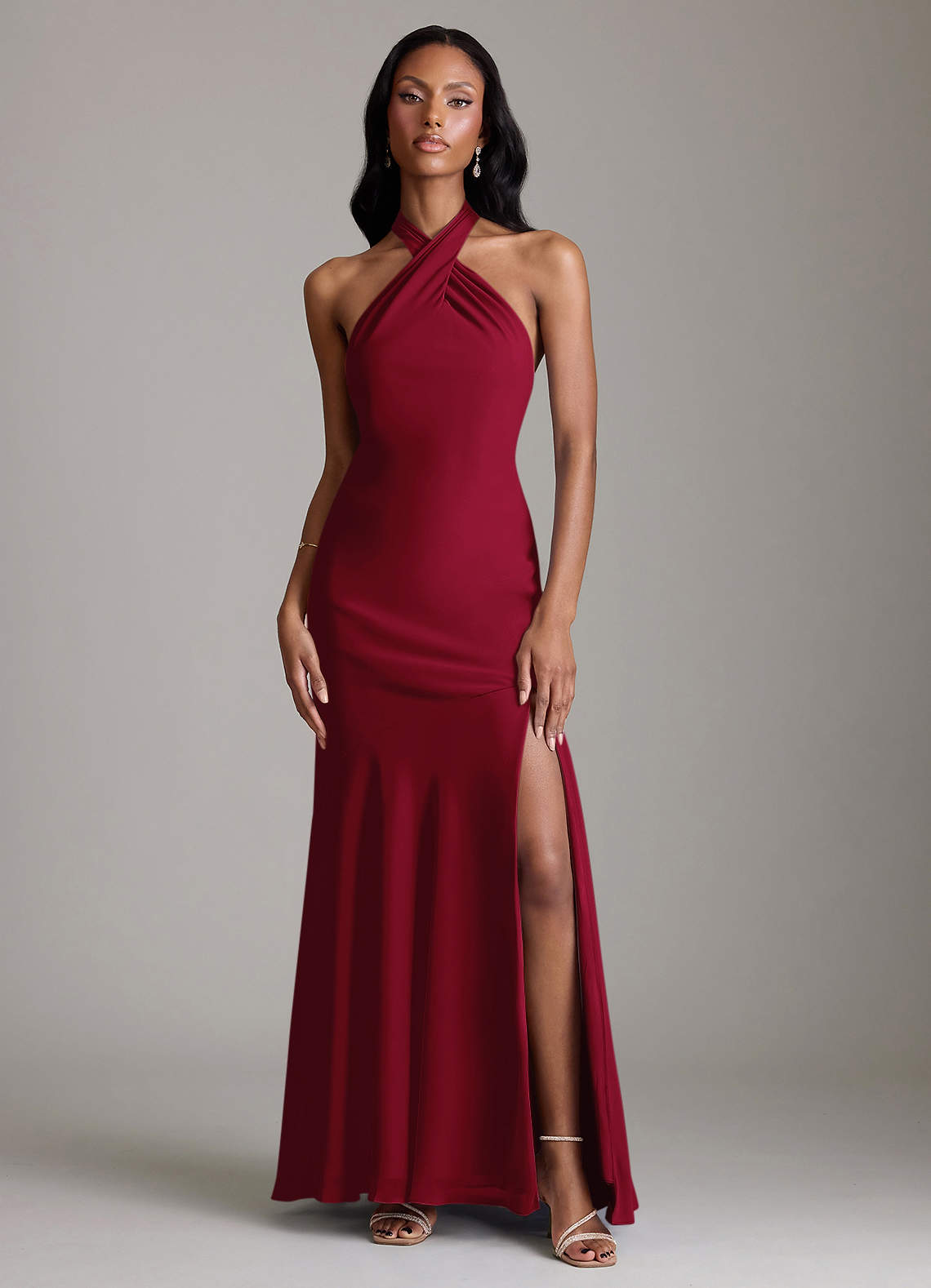 Vestido de Borgoña de Gasa de Corte Sirena con Plisado
