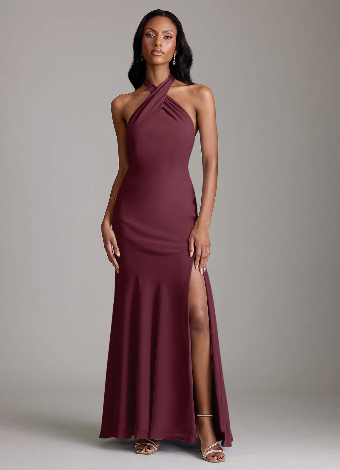 Vestido de Cabernet de Gasa de Corte Sirena con Plisado
