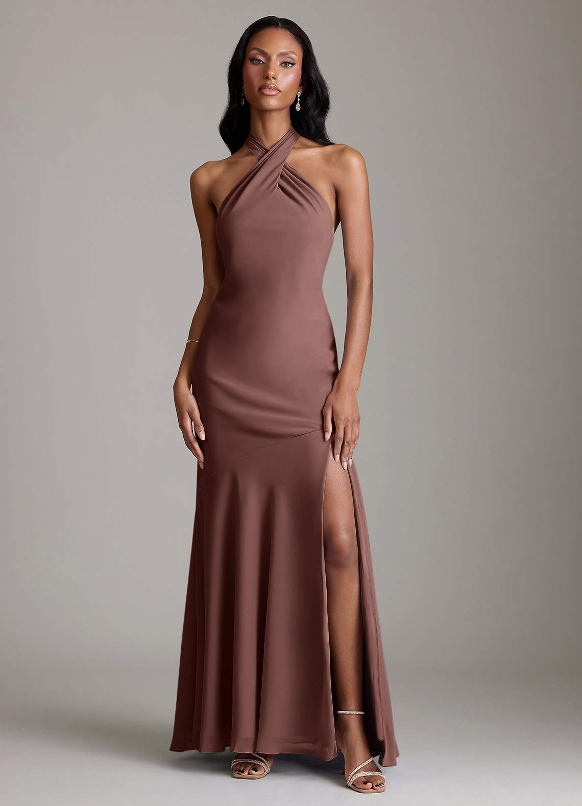 Vestido de Expresado de Gasa de Corte Sirena con Plisado
