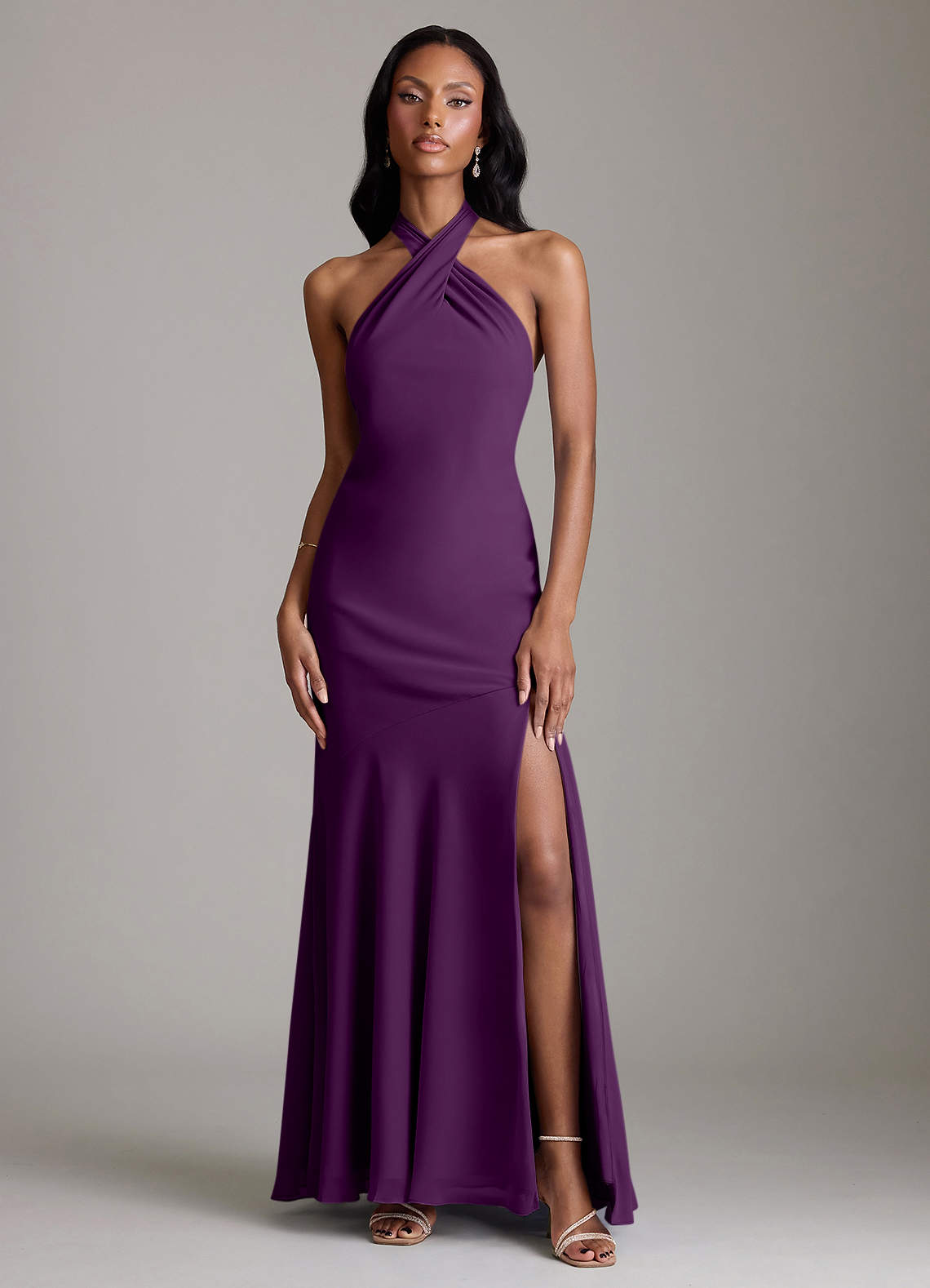 Vestido de Uva de Gasa de Corte Sirena con Plisado