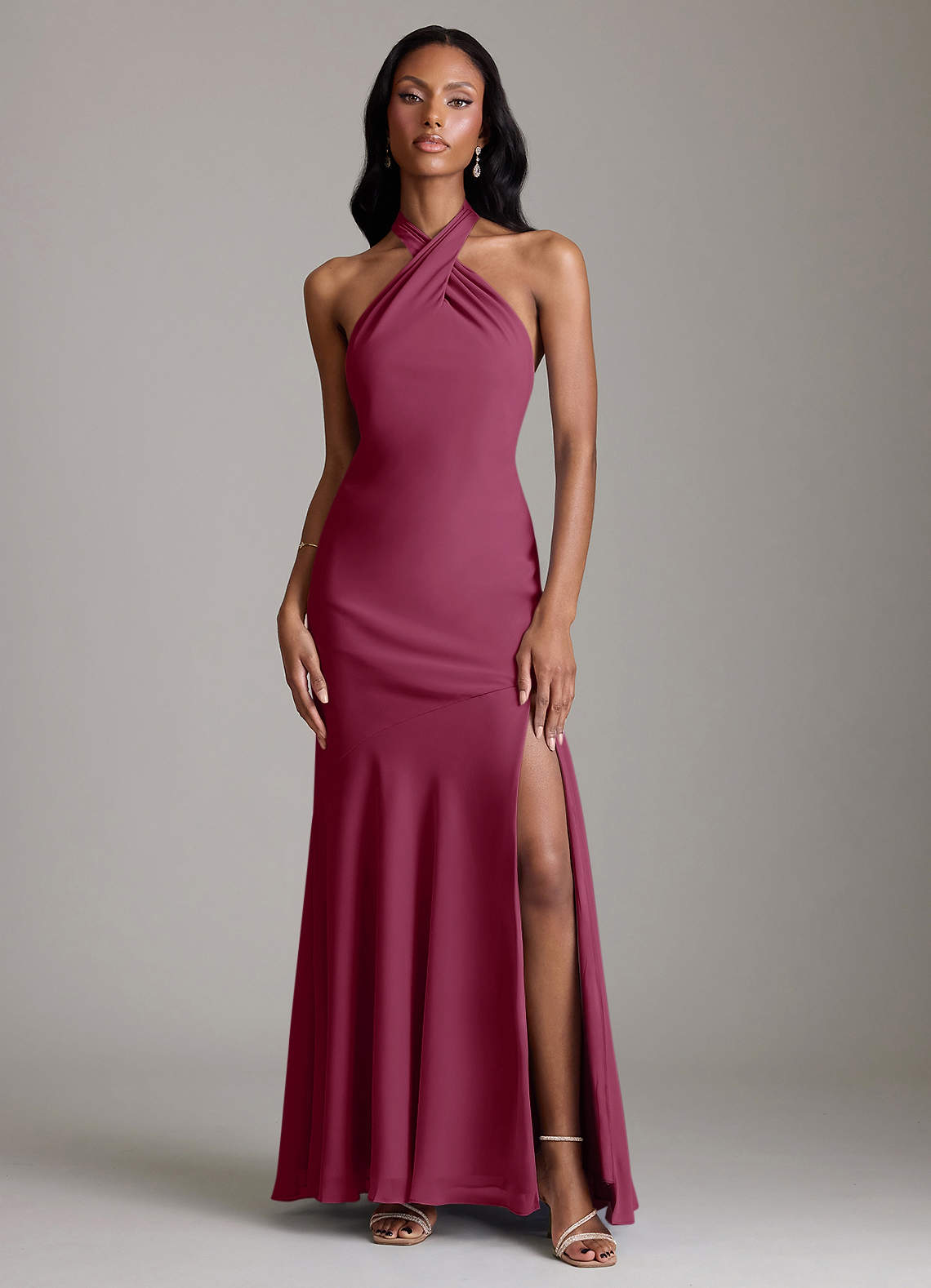 Vestido de Mora de Gasa de Corte Sirena con Plisado