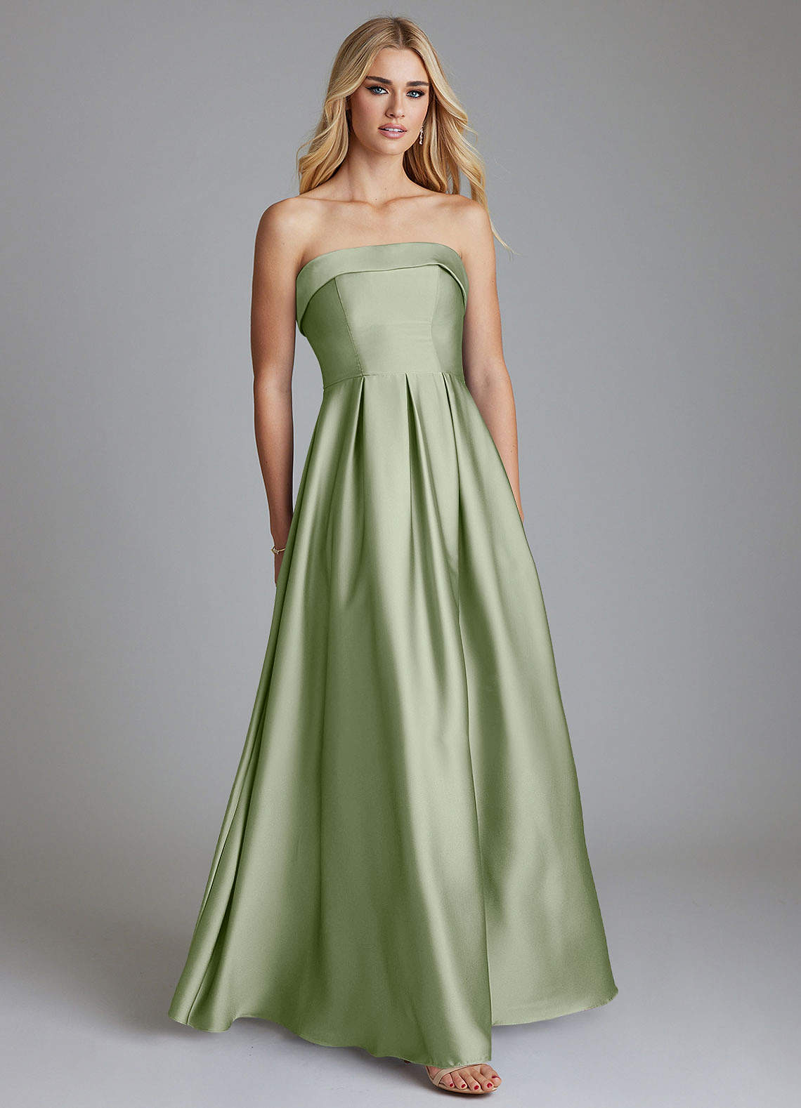 Vestido de Salvia Polvorienta de Satén Elástico de Corte en A Convertible con Sin tirantes