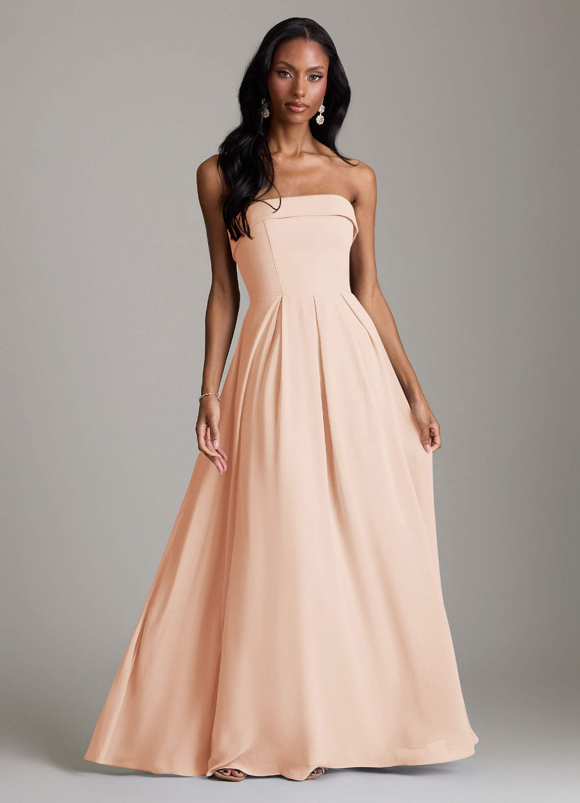 Vestido de Rosa Inglesa de Gasa de Corte en A Convertible con Sin tirantes