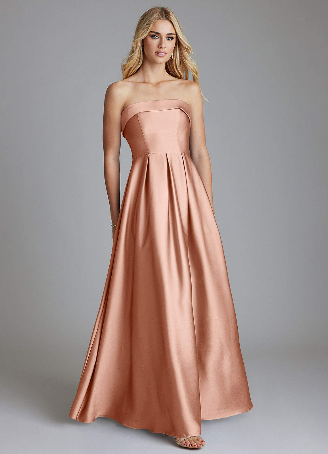 Vestido de Oro Rosa de Satén Elástico de Corte en A Convertible con Sin tirantes