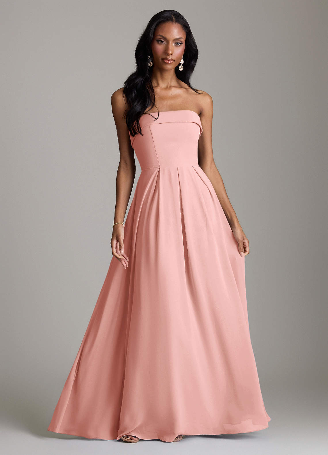 Vestido de Rosetón de Gasa de Corte en A Convertible con Sin tirantes