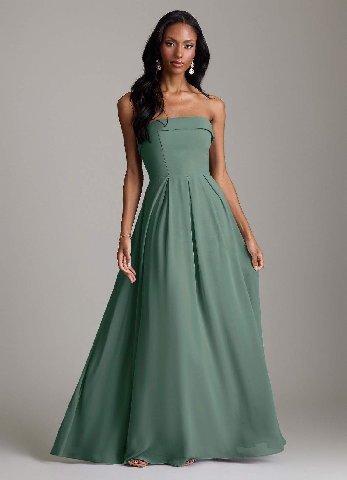 Vestido de Musgo Marino de Gasa de Corte en A Convertible con Sin tirantes